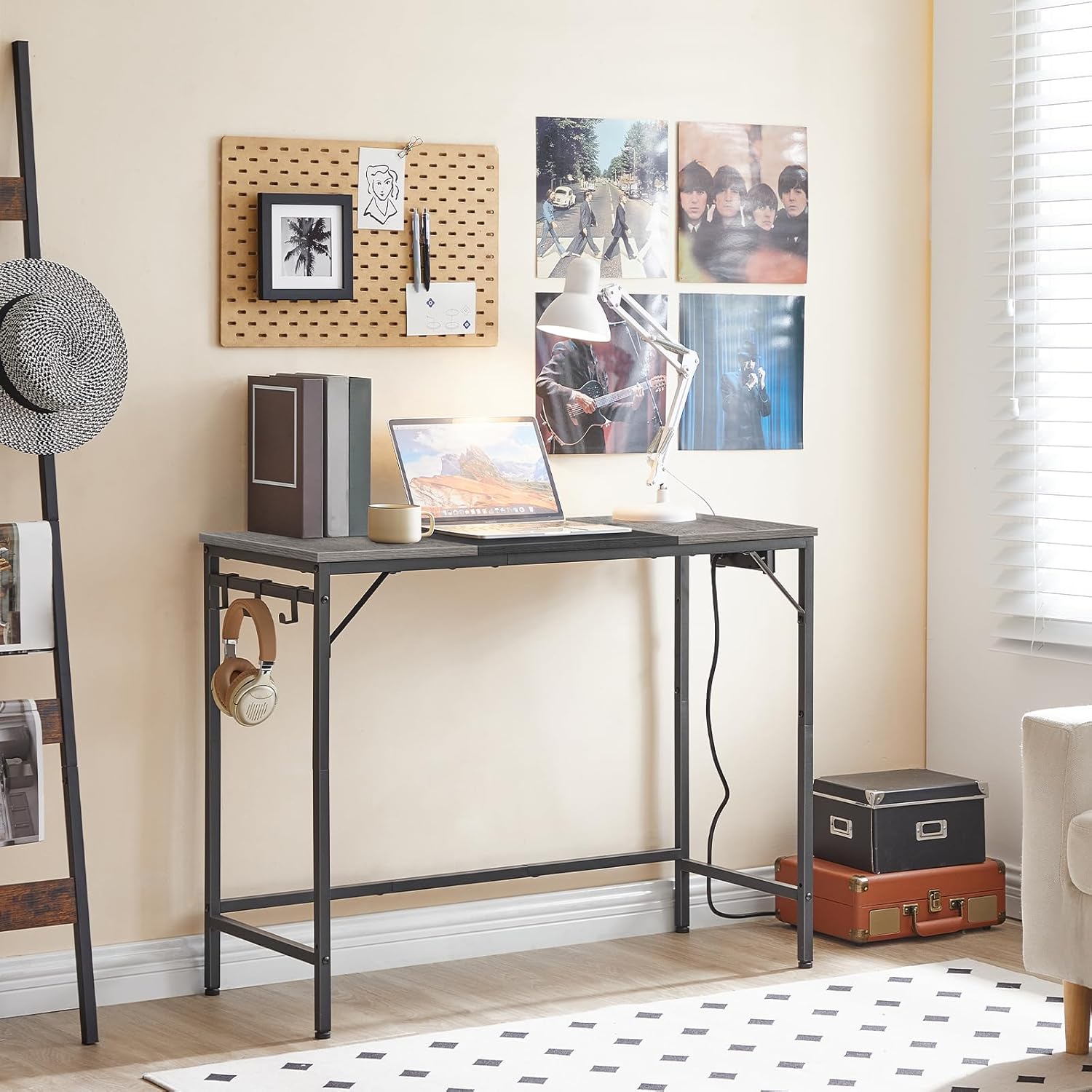 Applicable to Various Scenes: It can be used for home office as a computer desk, a writing table, a game table, a study desk, a dining table or a printer stand. 3 hooks provide storage space for your keys, small bags, earphones and other belongings