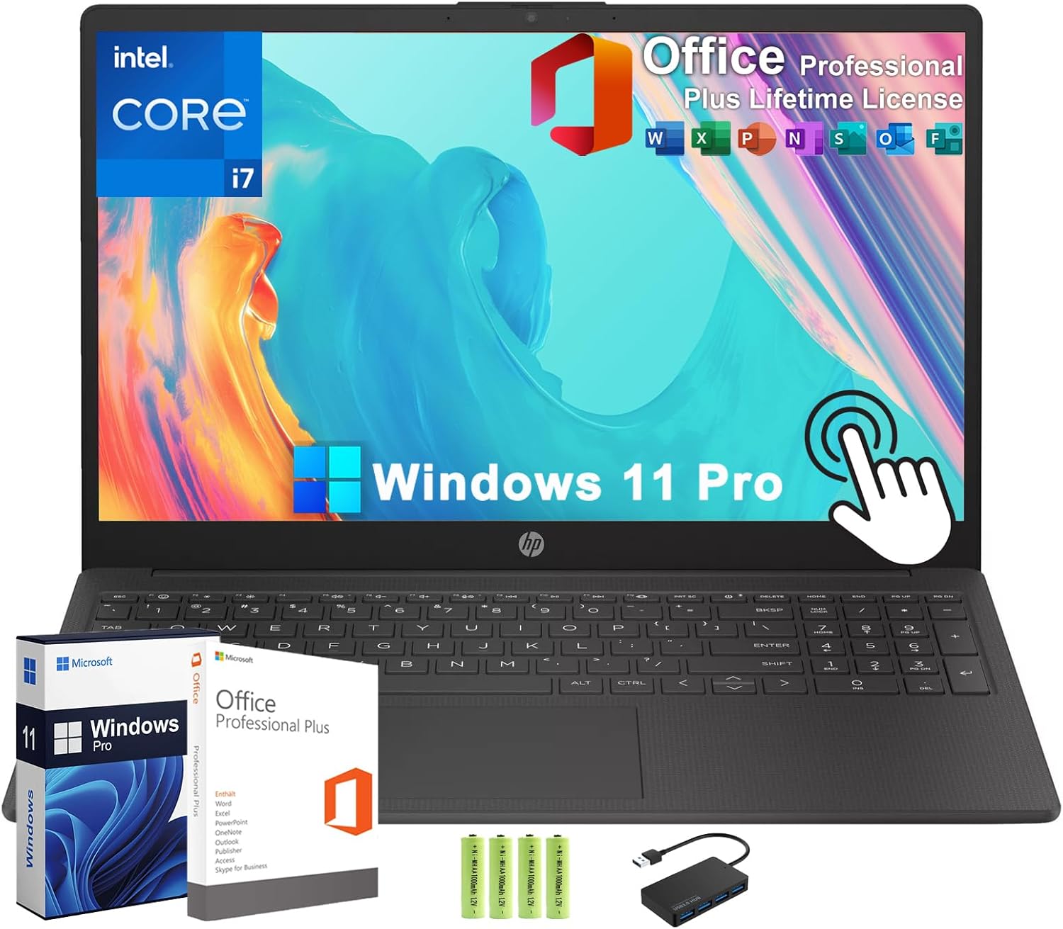 HP 15 15.6″ HD Touchscreen Business Laptop [Windows 11 Pro], 64GB RAM, 2TB SSD, Intel 13th Gen 10-core i7-1355U (Up to 5.0Ghz), Free MS Office, Numeric keypad, Wi-Fi 6, BT 5.3, w/Hub+Battery