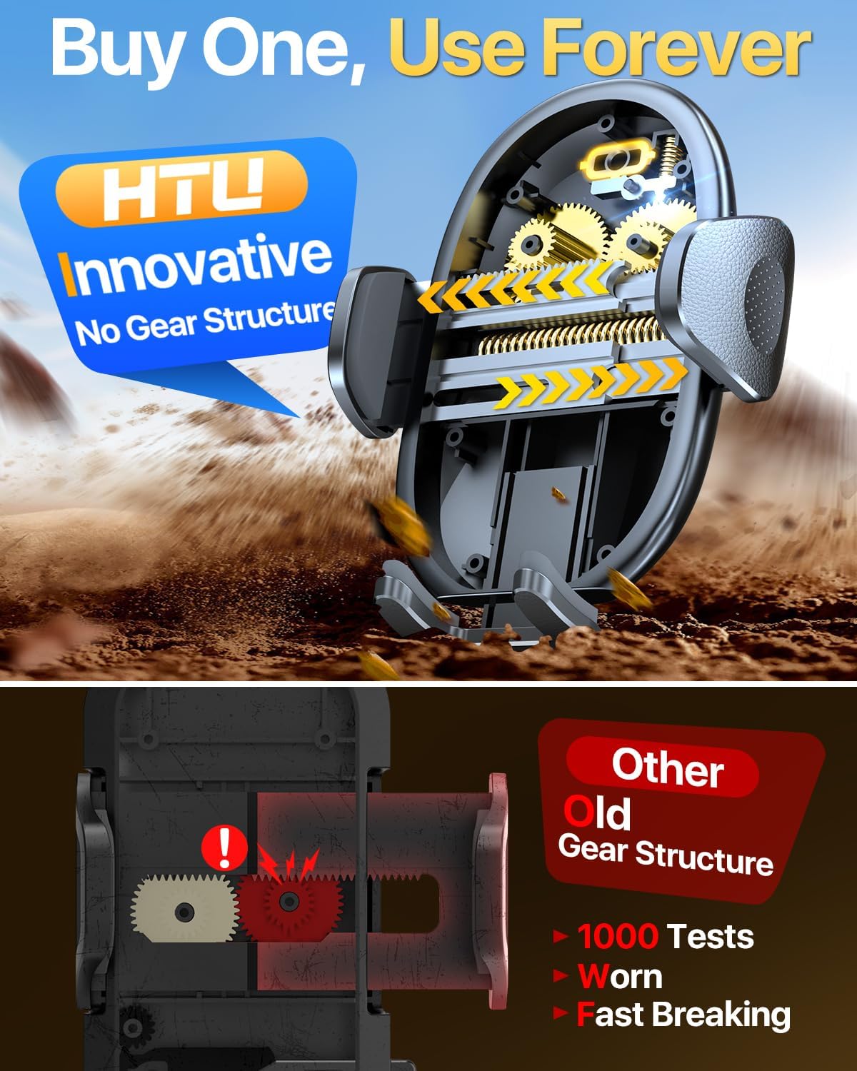 [1-Touch Release, Instant Grip] A top-back release button allows single-handed deployment in 1s while driving vs. side or lower-back release button is big phone friendly. The clamp arms, crafted from aerospace-grade PC material, endure 3,000 times open-close cycle tests to maintain a vice-like grip on rough road