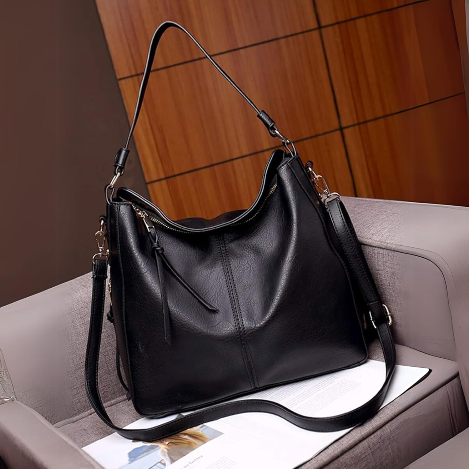 This Italish spacious faux leather hobo bag is the perfect companion for your everyday needs. Crafted with meticulous attention to detail, it boasts a generous interior with six pockets, including a zippered compartment, a main compartment, a cell phone pocket, and a document pocket, ensuring ample space for all your essentials. Measuring 39 cm in length, 33 cm in height, and 13 cm in width, this bag strikes a perfect balance between style and functionality. The detachable and adjustable strap allows you to wear it as a shoulder bag or a hobo bag, adapting to your preferences. With its timeless design and practical features, this bag is a must-have accessory for the modern woman on-the-go.