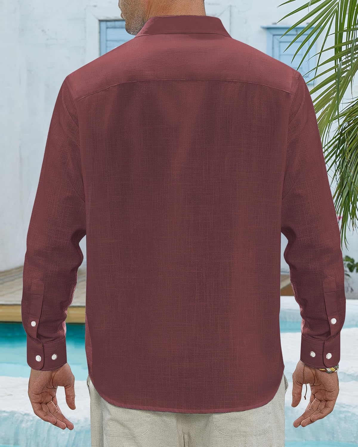 Customers find this linen-cotton shirt to be well-made with top-notch stitching and appreciate its style, with one customer noting the delicate geometric embroidery on the pocket. The shirt receives positive feedback for its comfort, with one mentioning it’s suitable for 95+ degree days, and its lightweight fabric that’s perfect for summer heat. Customers consider it good value for money and like its fabric thickness, with one review highlighting the ideal cotton-to-linen ratio. The fit receives mixed reviews, with some finding it nice while others say it doesn’t match the product photos.
