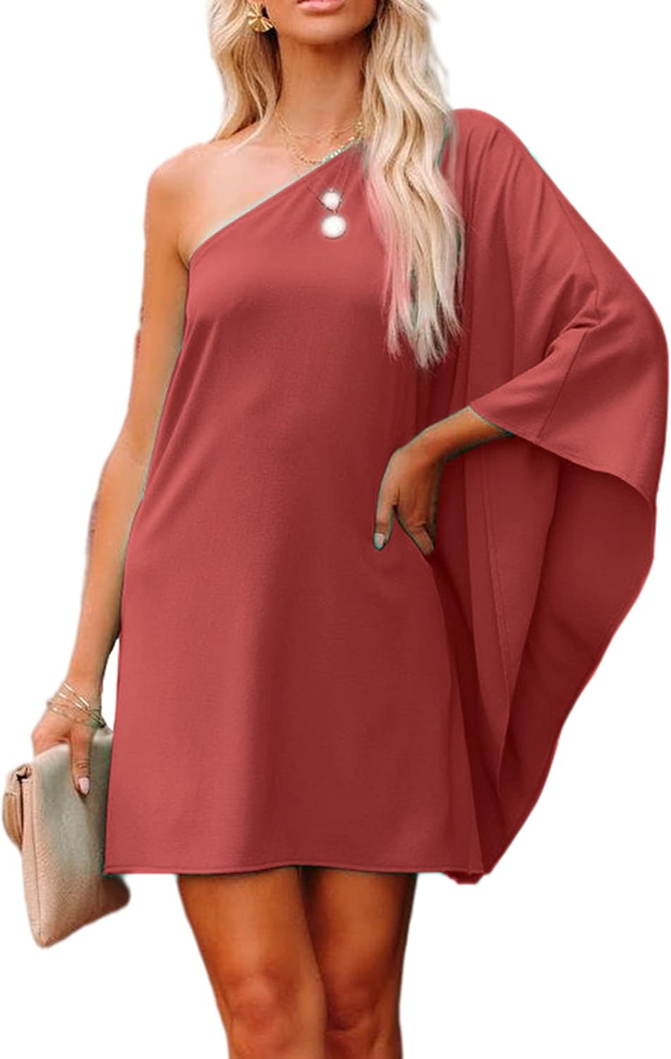 Women’s One Shoulder Dress Batwing Sleeve Mini Dress Elegant Party Club Dresses