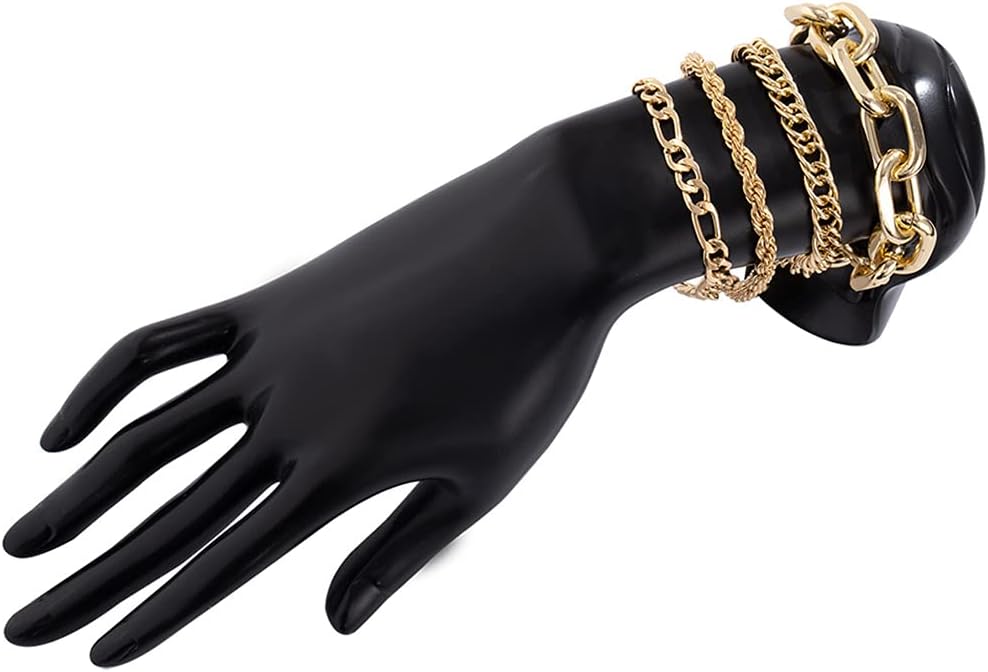 JWICOS Gold Boho Stacking Chunky Bangle Bracelet for Women and Girls Flat Mariner Bracelet Cuban Chain Bracelet Set Cut Rope Chain Bracelet for Women and Girls Gift Set of 4