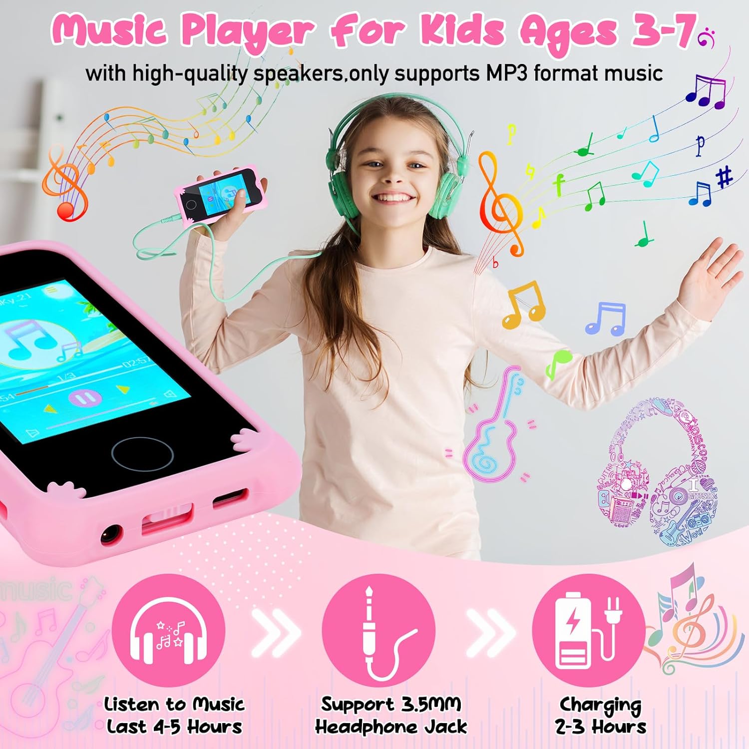 🦄️【Safe & Durable Shockproof】Made with high-quality non-toxic soft plastic, this toddler music player is safe and comfortable for children’s skin. The shockproof shell provides effective anti-fall protection.