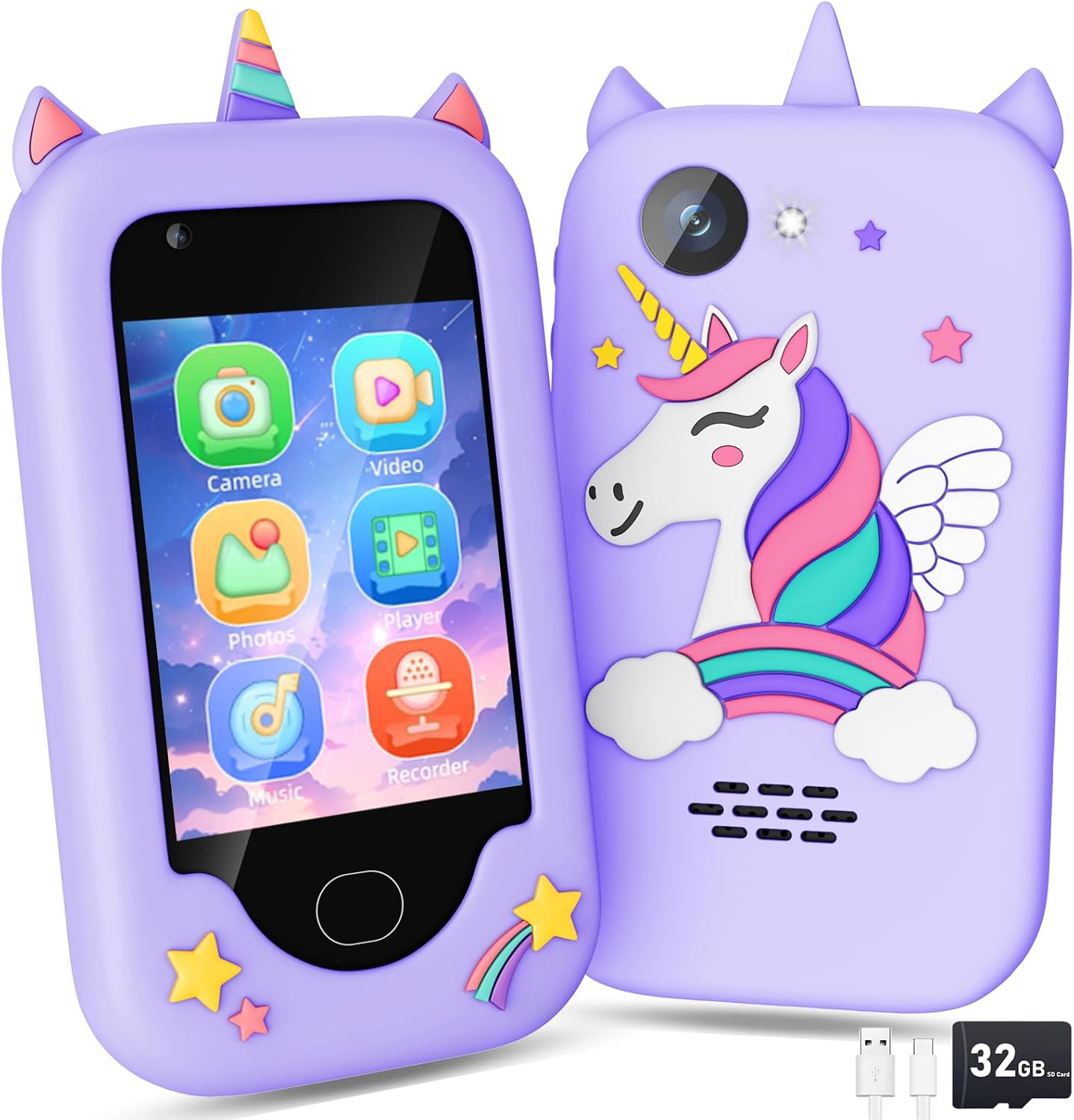 32GB Smart Phone for Kids: The phone for kids is equipped with 2.8-inch IPS touch screen, offering kids a rich interactive experience. With a 32GB TF card included, it provides ample storage for photos, videos, music, and more, to stimulate your kid’s creativity and imagination