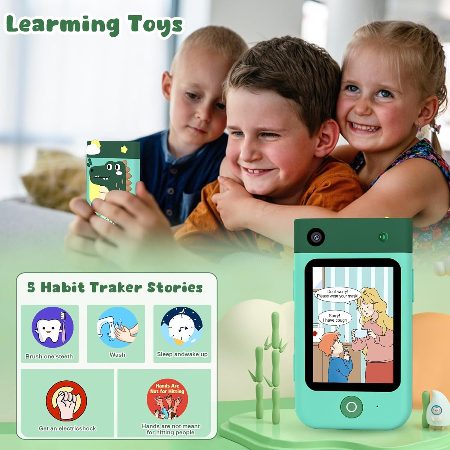 Children’s travel mobile phone,boys fake phone have a built-in flashlight for exploring and a timer for managing time. The habit recorder reminds children to engage in activities like studying, eating, and exercising, in order to develop good habits and improve self-discipline and focus.