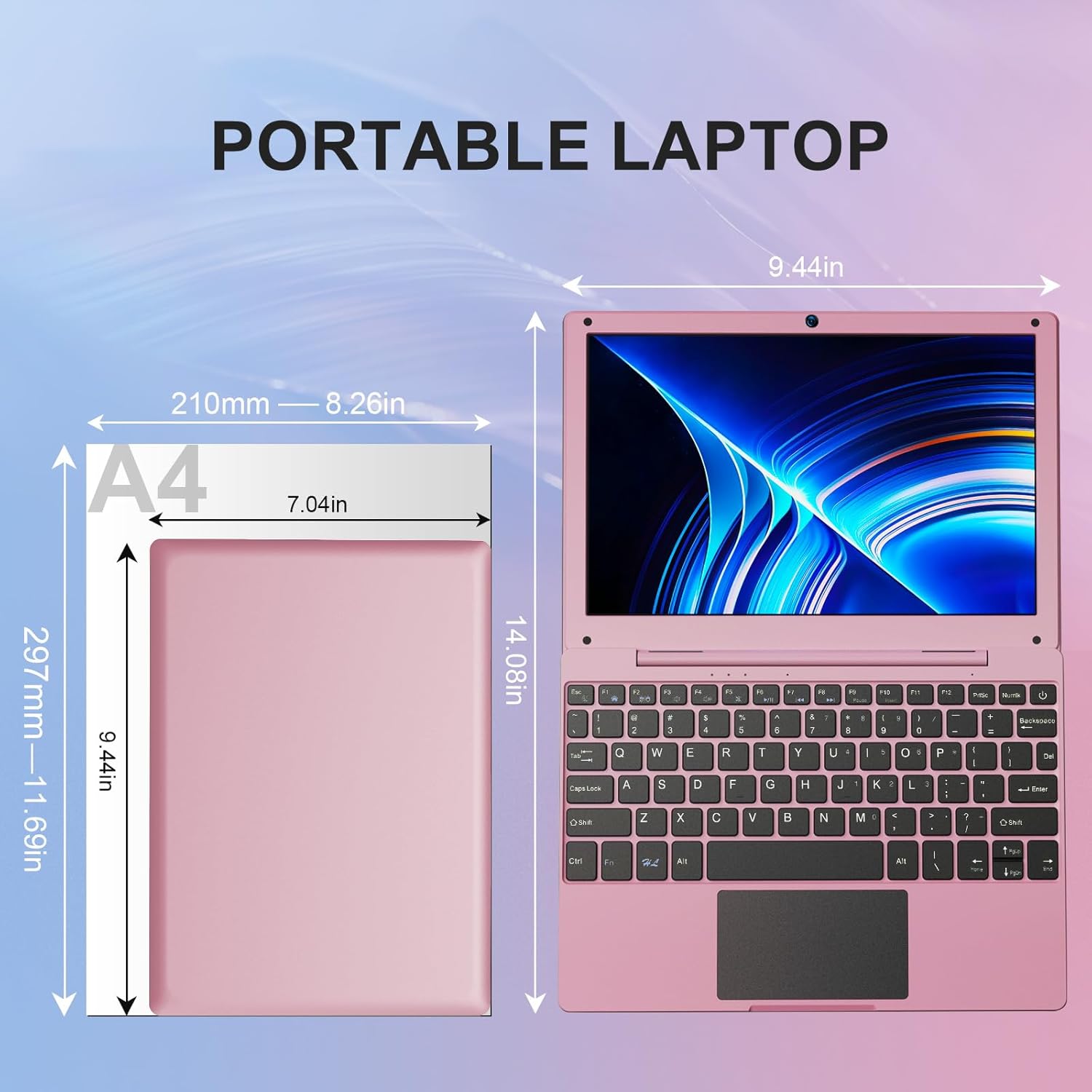 Laptop Computer, Windows 11 Laptop, 8GB+128GB, Intel Celeron Dual core Processors, 10″ Laptops, Bluetooth WiFi Webcam HDMI, and Laptop Bag,Mouse, Mouse Pad, Headphone(Rose Gold)