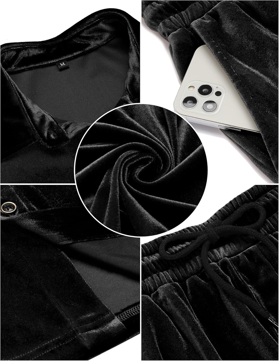 LecGee Men Summer Casual Short Sets Velvet Shirt and Shorts Velour Tracksuit