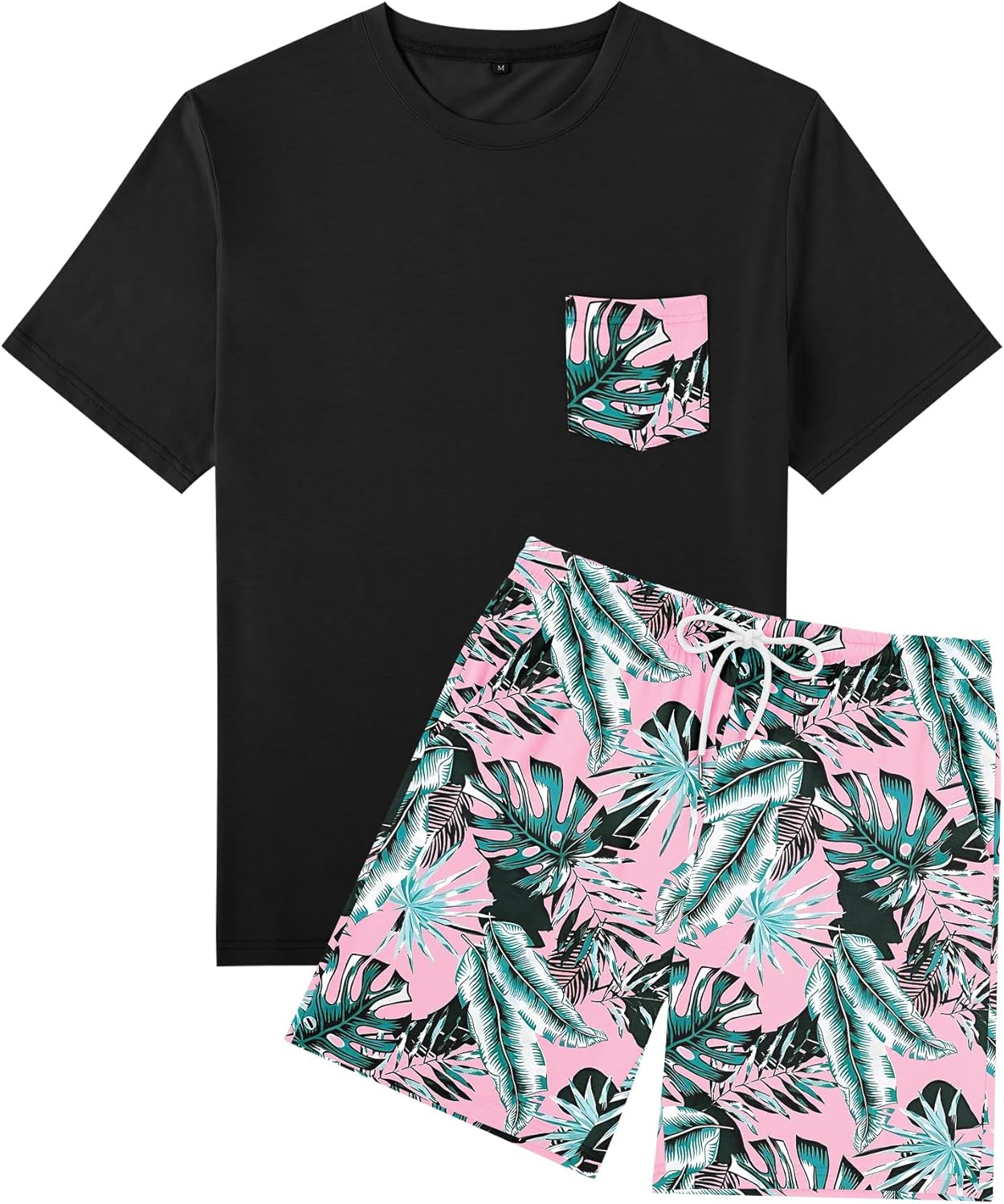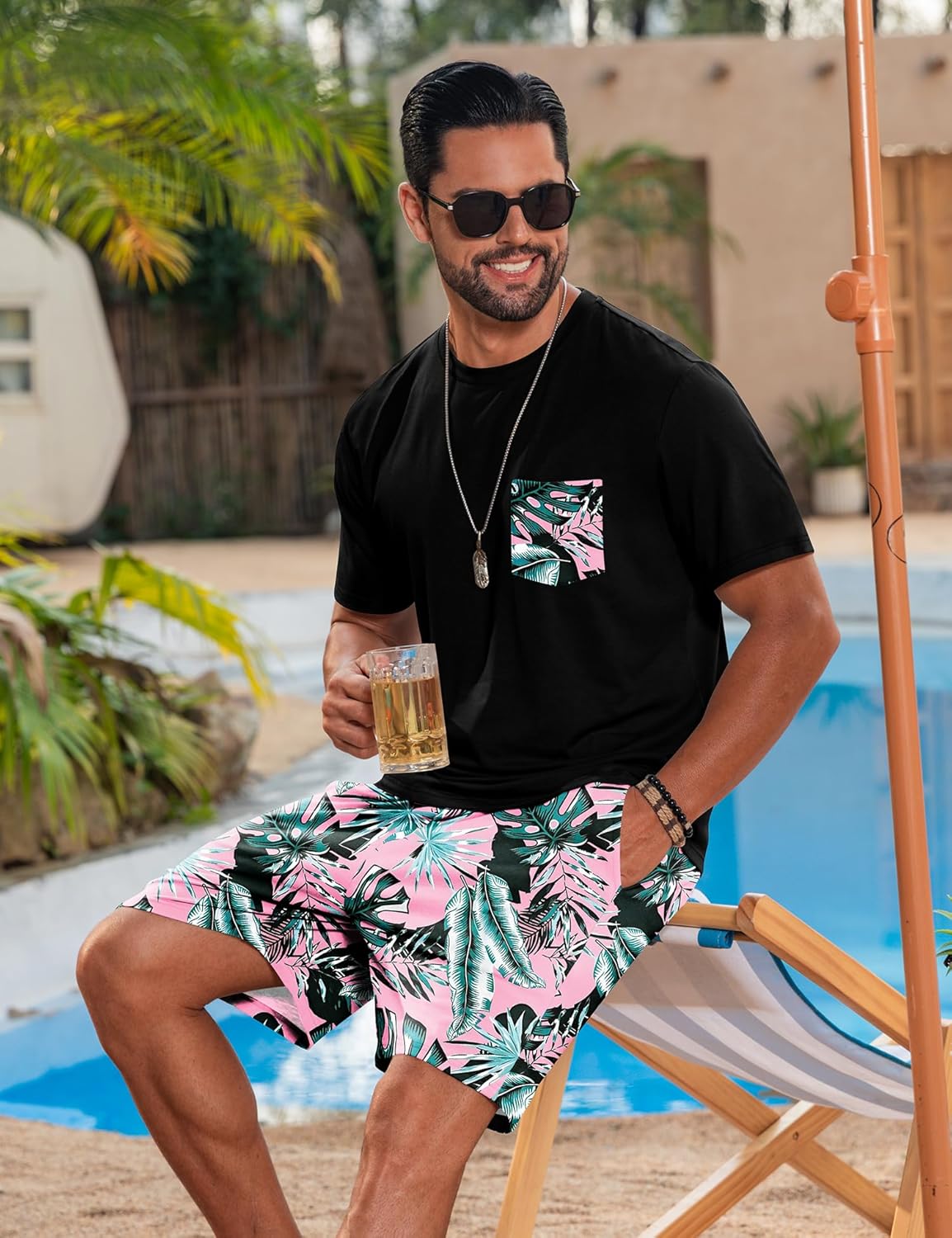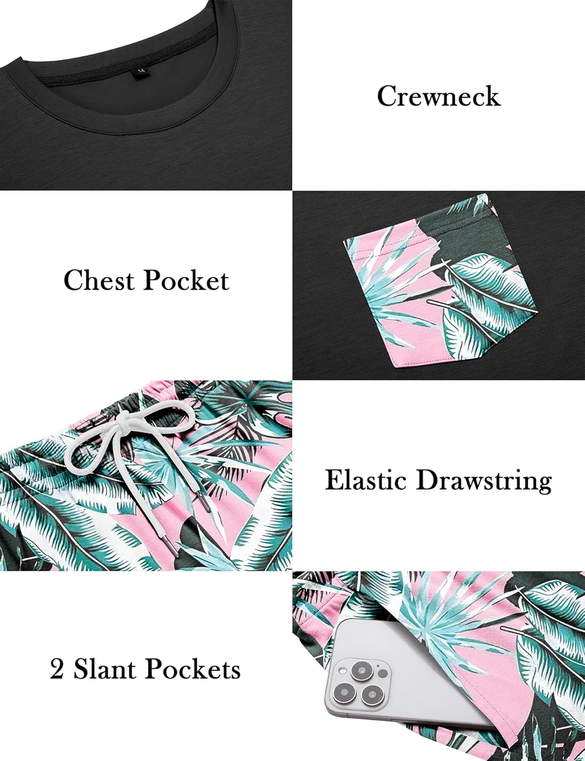 LecGee Mens Hawaiian 2 Piece Summer Outfits Short Sleeve Shirt and Floral Print Shorts Sets Beach Vacation Clothes for Men