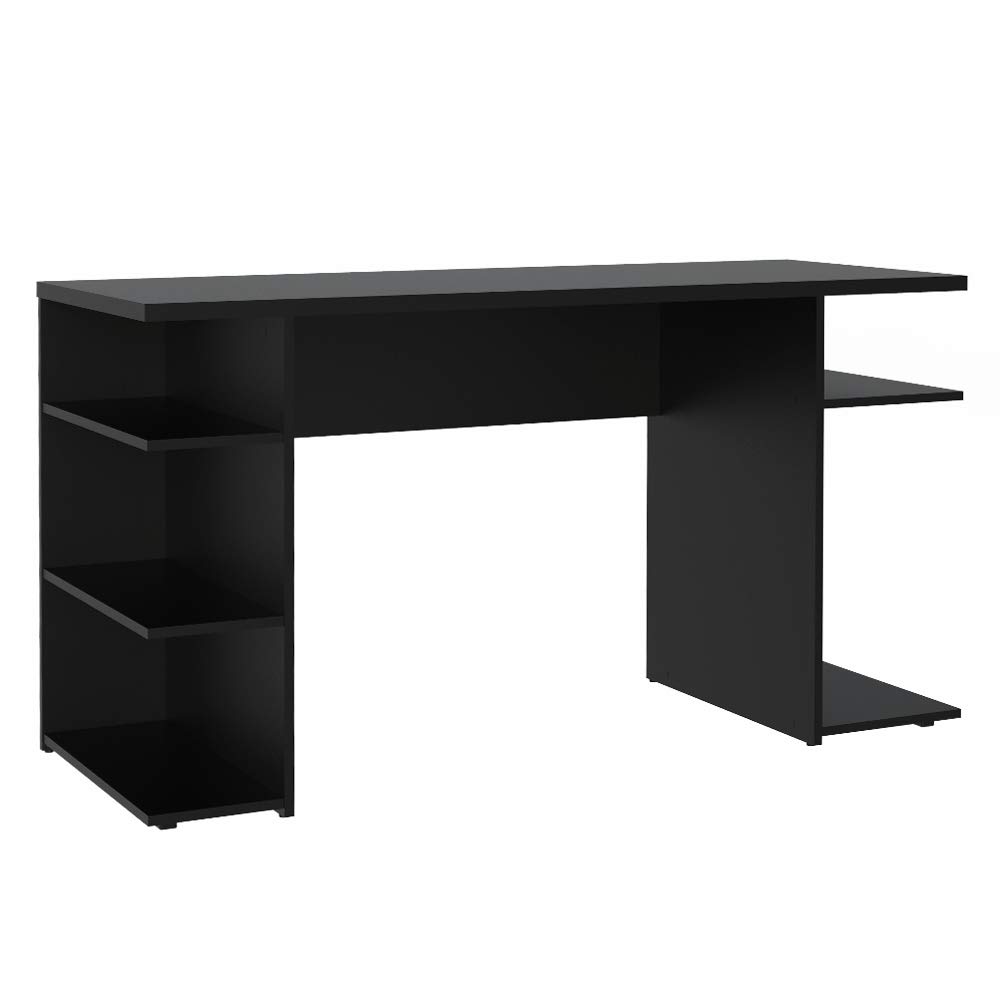 FEATURES: Enough space for multiple monitors, with the 5 storage shelves you can easily organize your gaming stuff, plenty of storage space, this desk has NO paint finish at the back, seven layers of polyester paint protection and supports up to 50 Kg