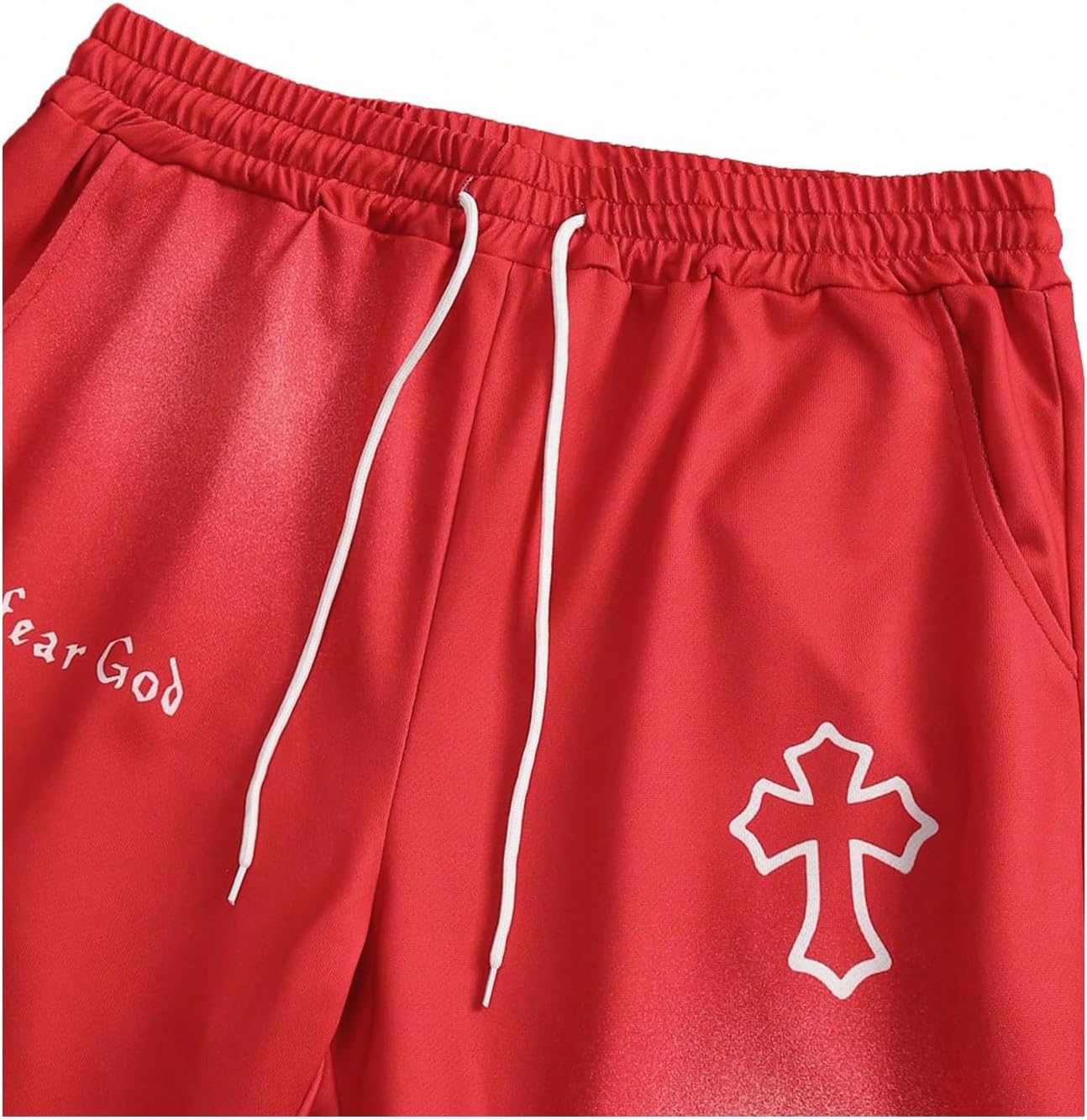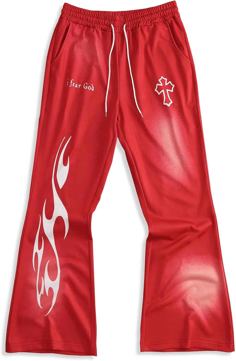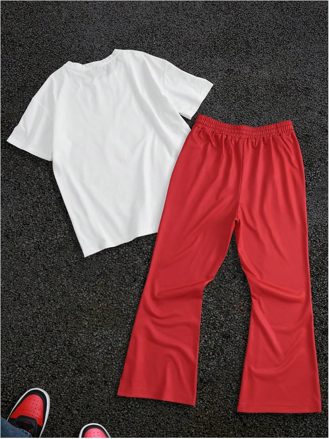 Men’s 2 Piece Outfits Short Sleeve Letter Graphic Tees and Drawstring Flared Sweatpants Tracksuits Set