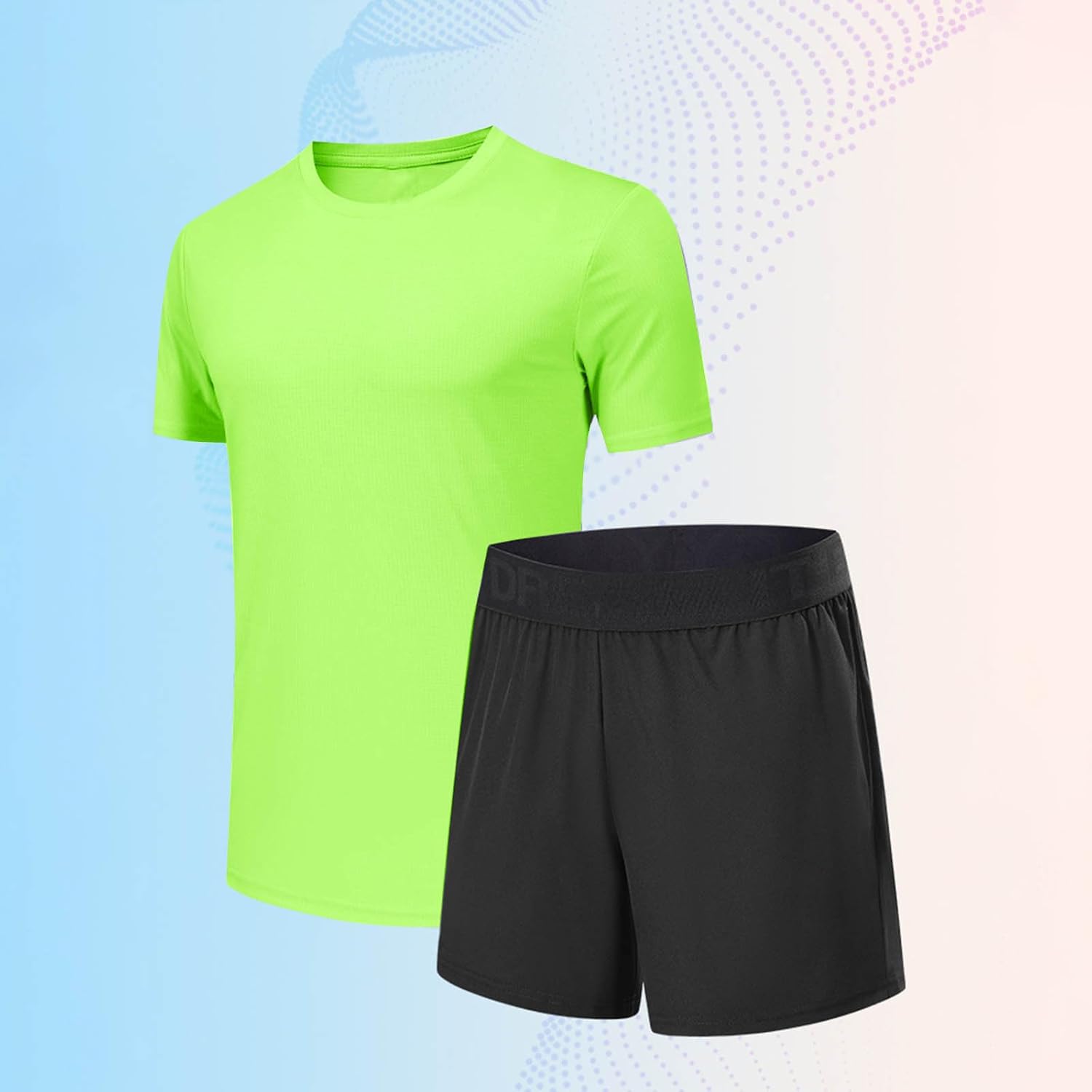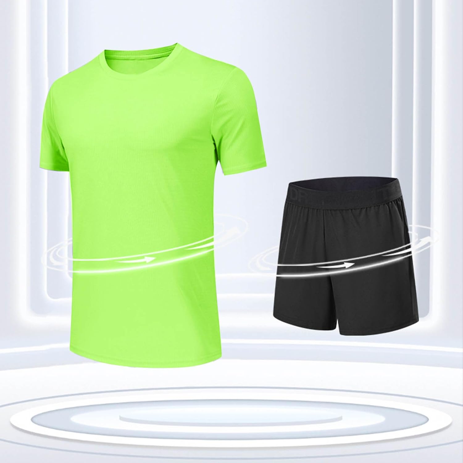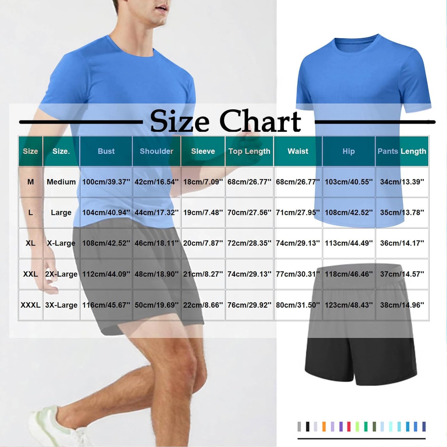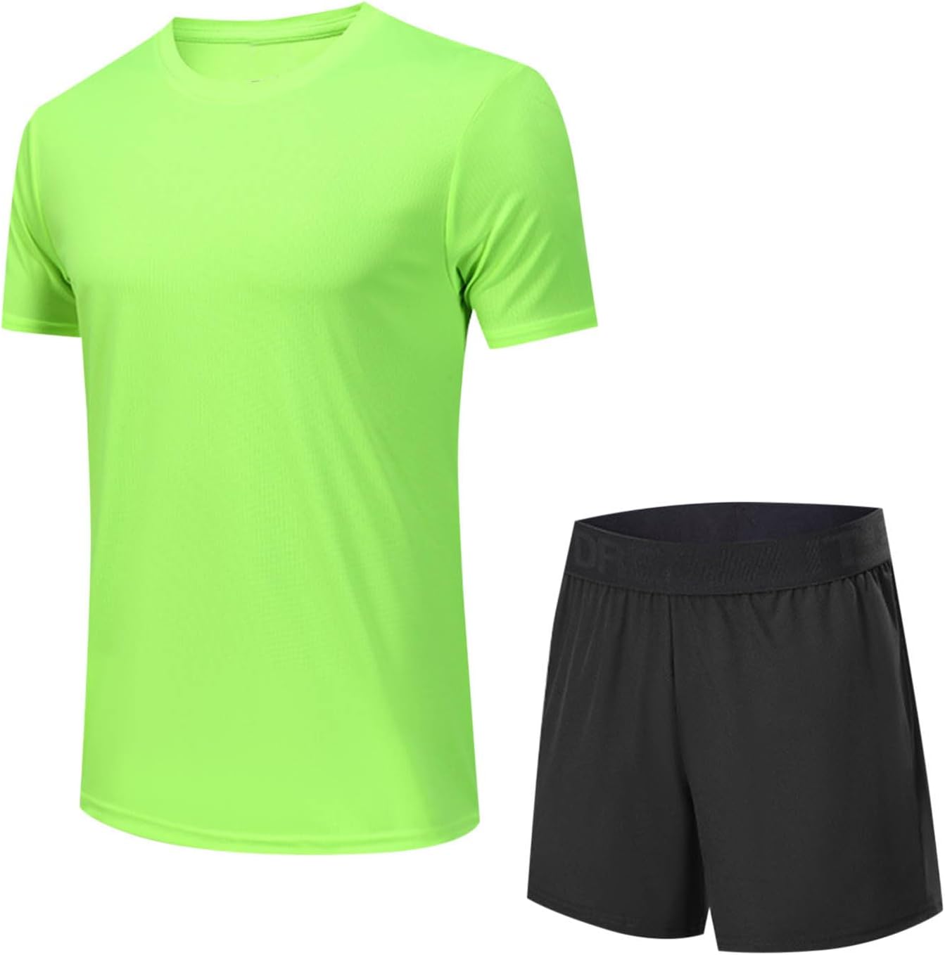 Mens 2 Piece Outfits Workout Shirts for Men Short Sleeve Stretch Running Shirt Elastic Waist Athletic Shorts Suit