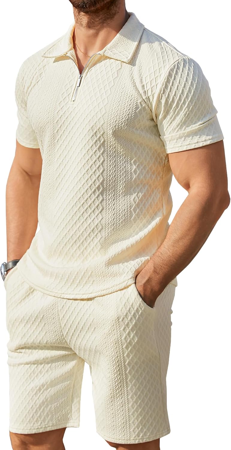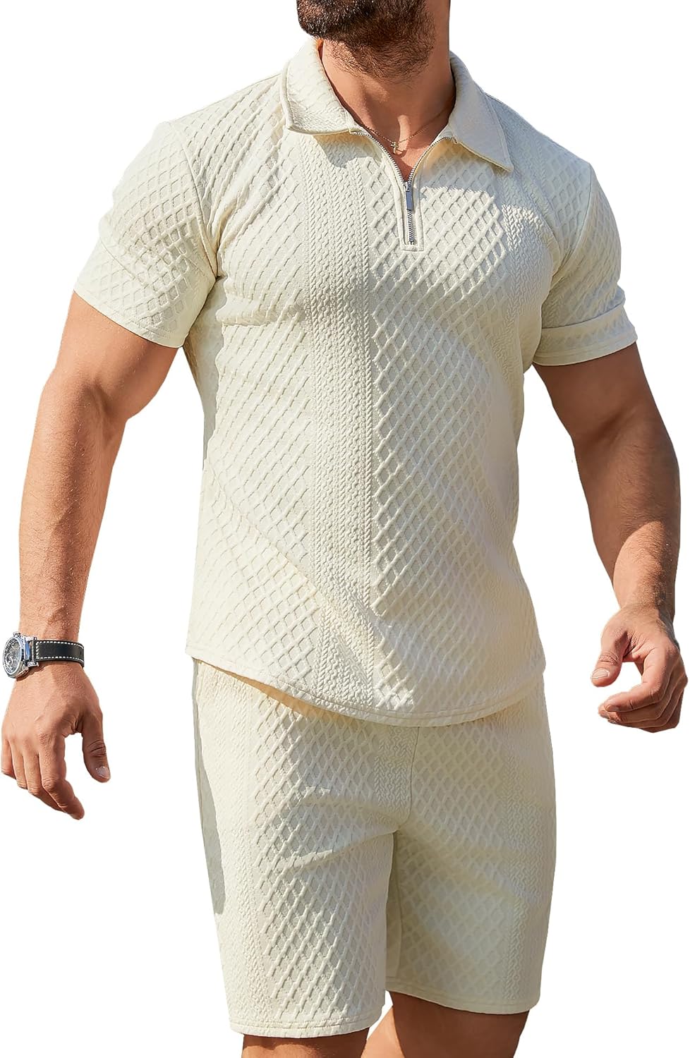 Men’s Polo Shirt and Shorts Sets 2 Pieces Zip Tracksuit Casual Summer Outfits