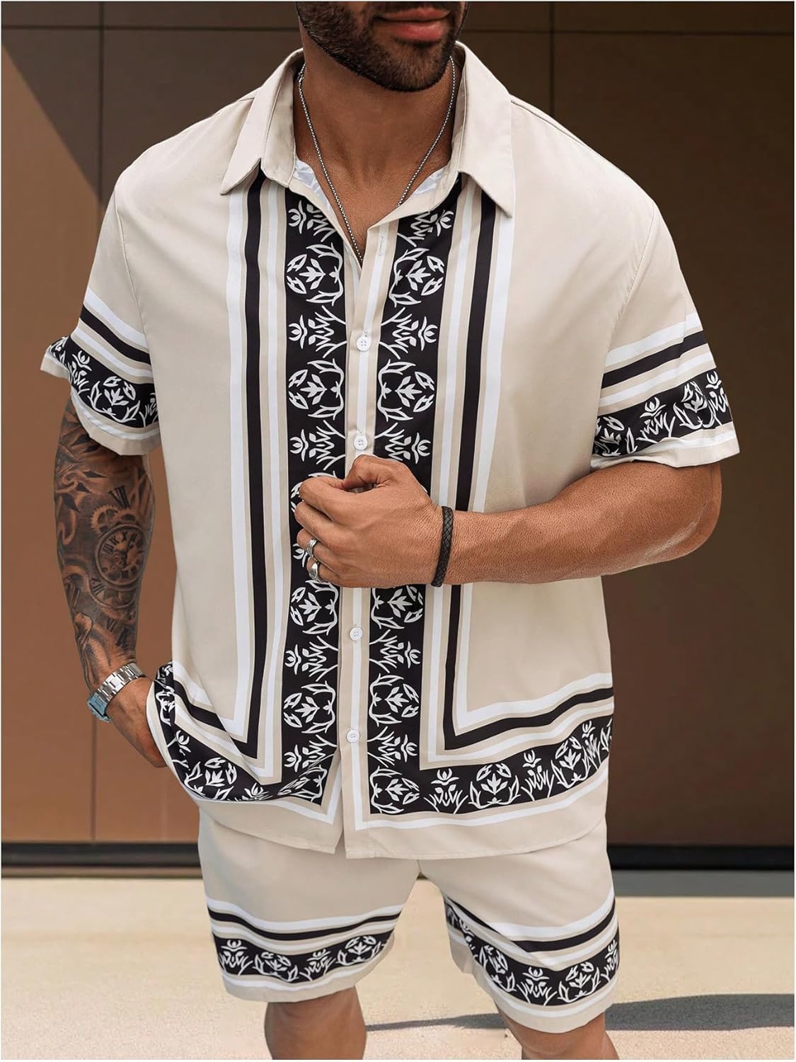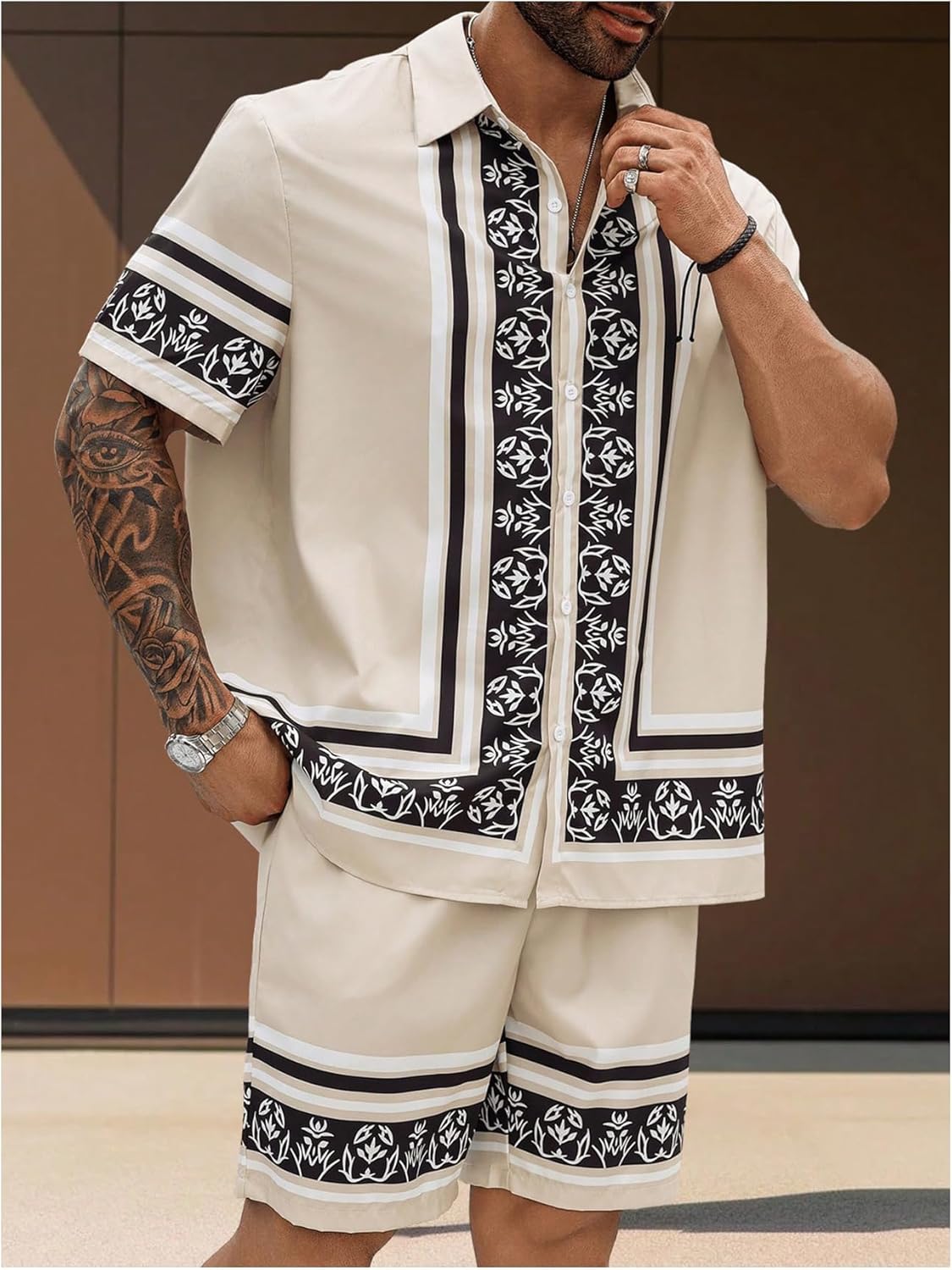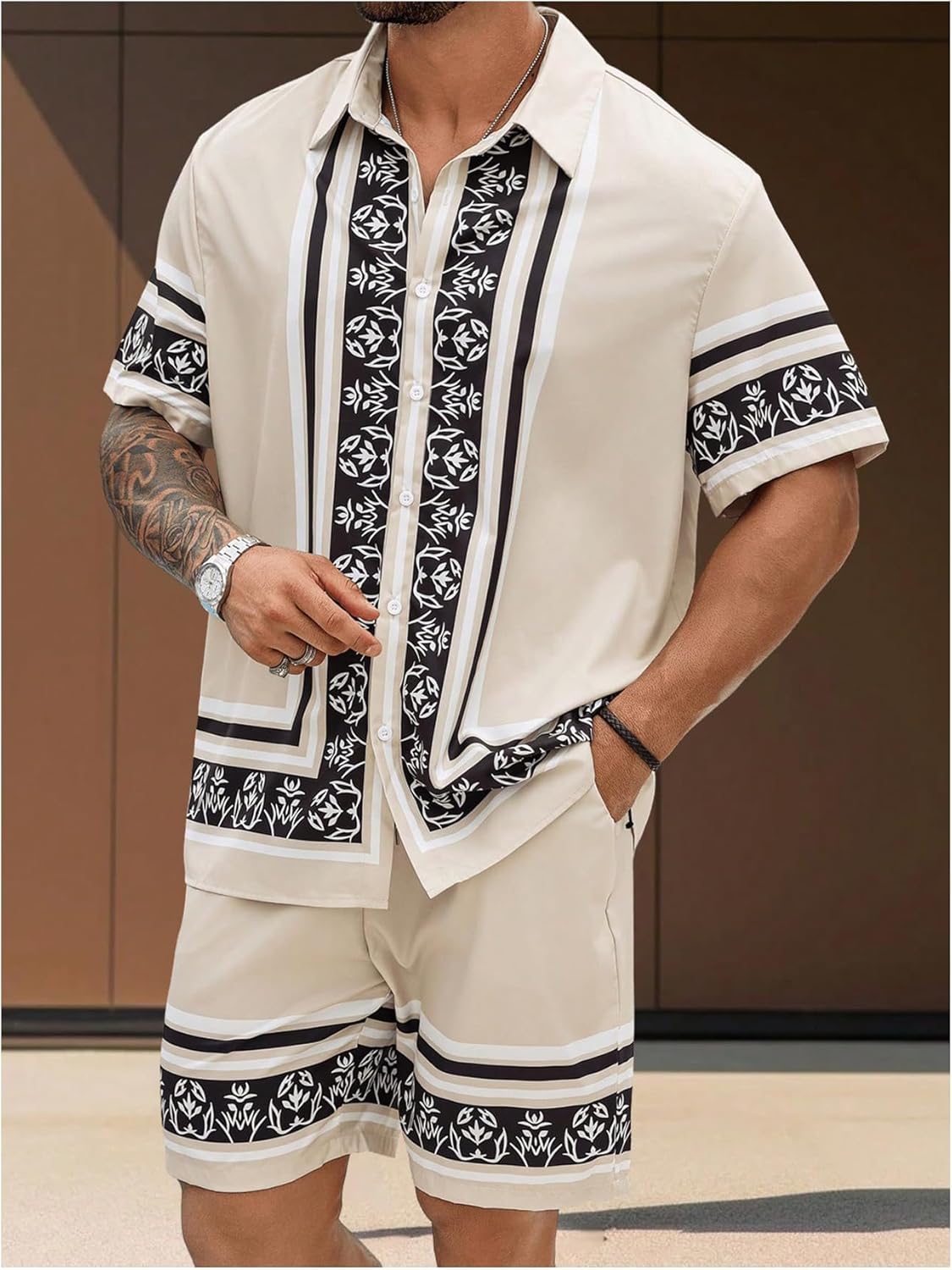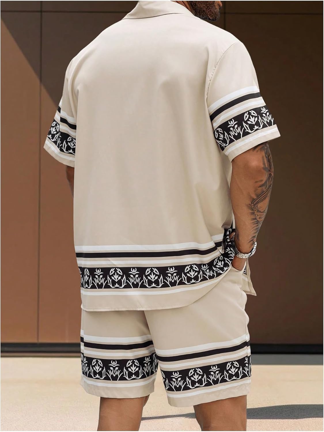 Men’s Big and Tall 2 Piece Outfits Short Sleeve Button Up Vintage Shirts and Elastic Waist Beach Shorts
