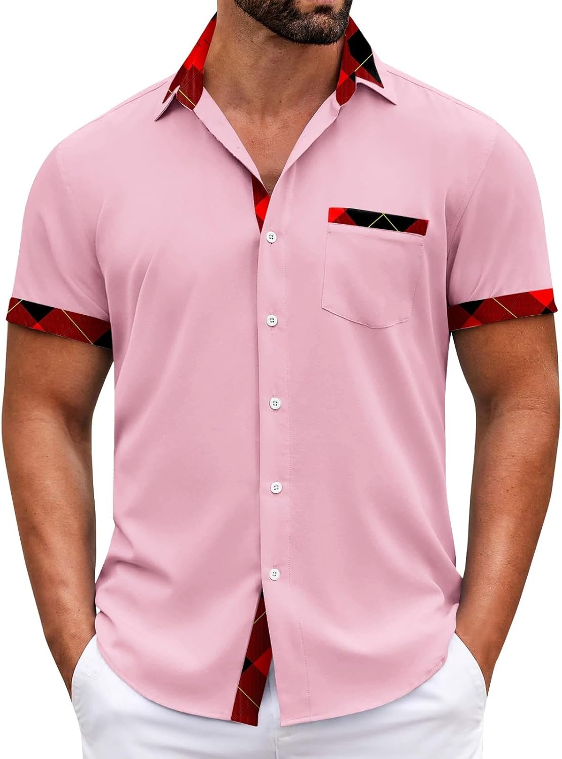 1.Material: The casual short sleeve shirt is made of high-quality fabric, soft and comfortable,easy to iron, lightweight and cool,good breathability, take away the stuffiness, and give you a better wearing experience.