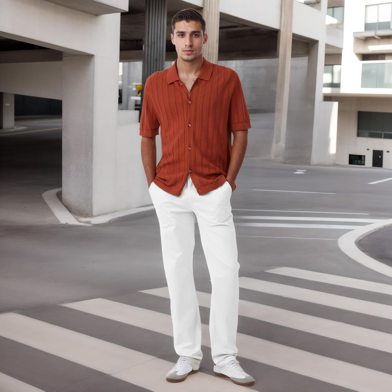 Customers find these dress pants comfortable, nice-looking, and worth the money. They appreciate the fabric’s stretch and softness. The fabric quality receives mixed feedback, with some customers describing it as good while others find it cheap.