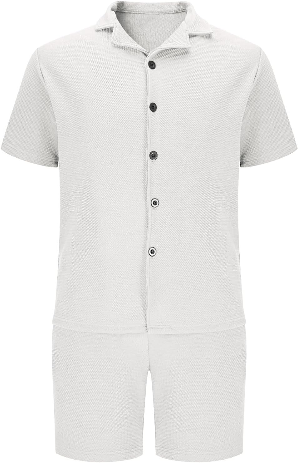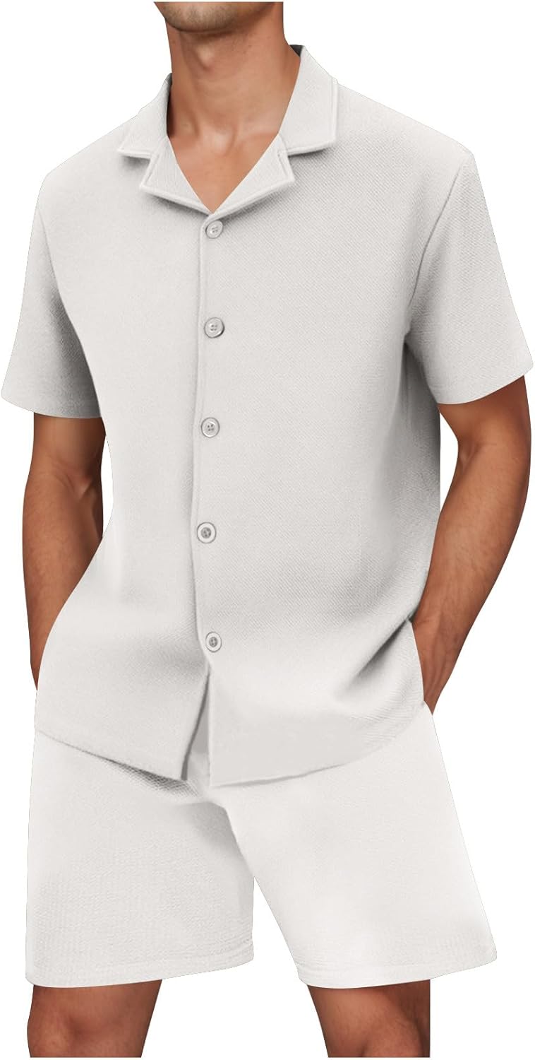 Mens Short Sets Outfits Short Sleeve Button Up Lapel Cardigan Shirts Casual Solid Color Elastic Shorts Sweatsuits