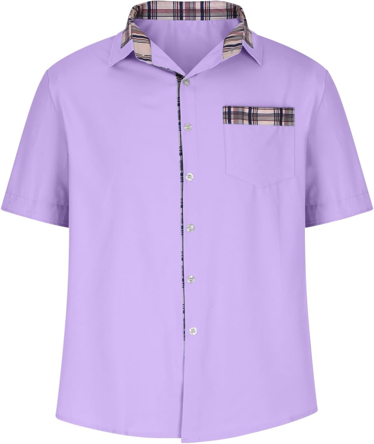 Men’s Short Sleeve Button Down Dress Shirt Plaid Collar Casual Work Shirts Beefy Plus Size Loose Summer Beach Outfit