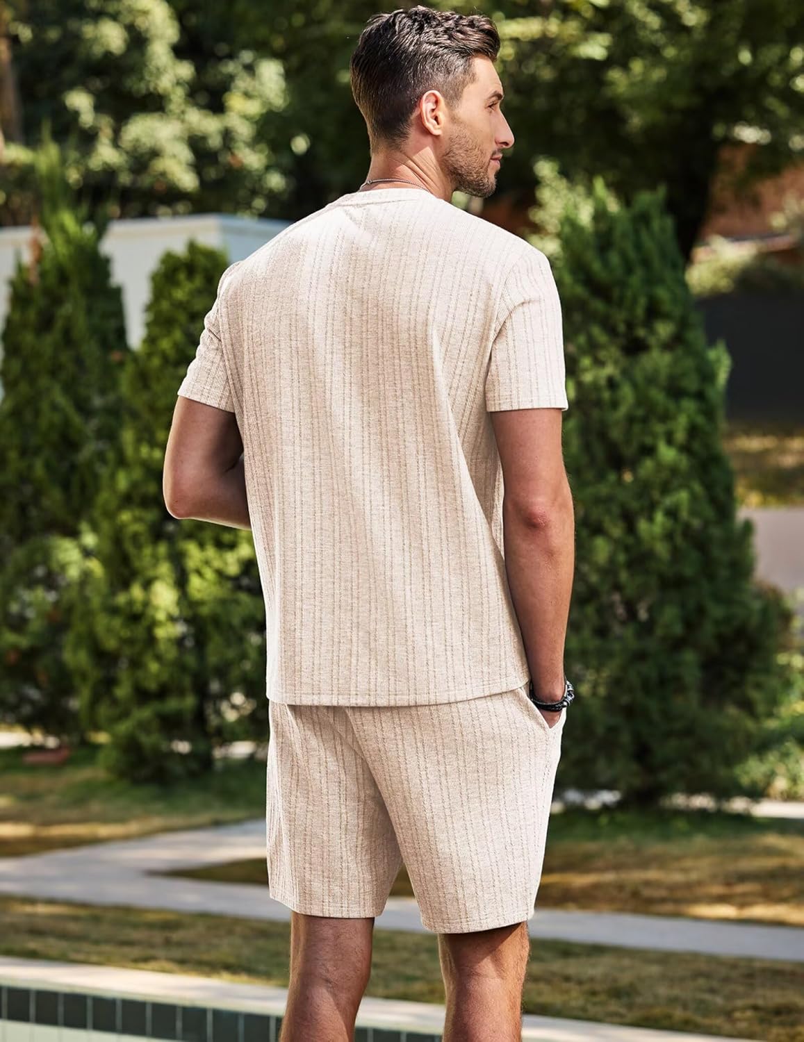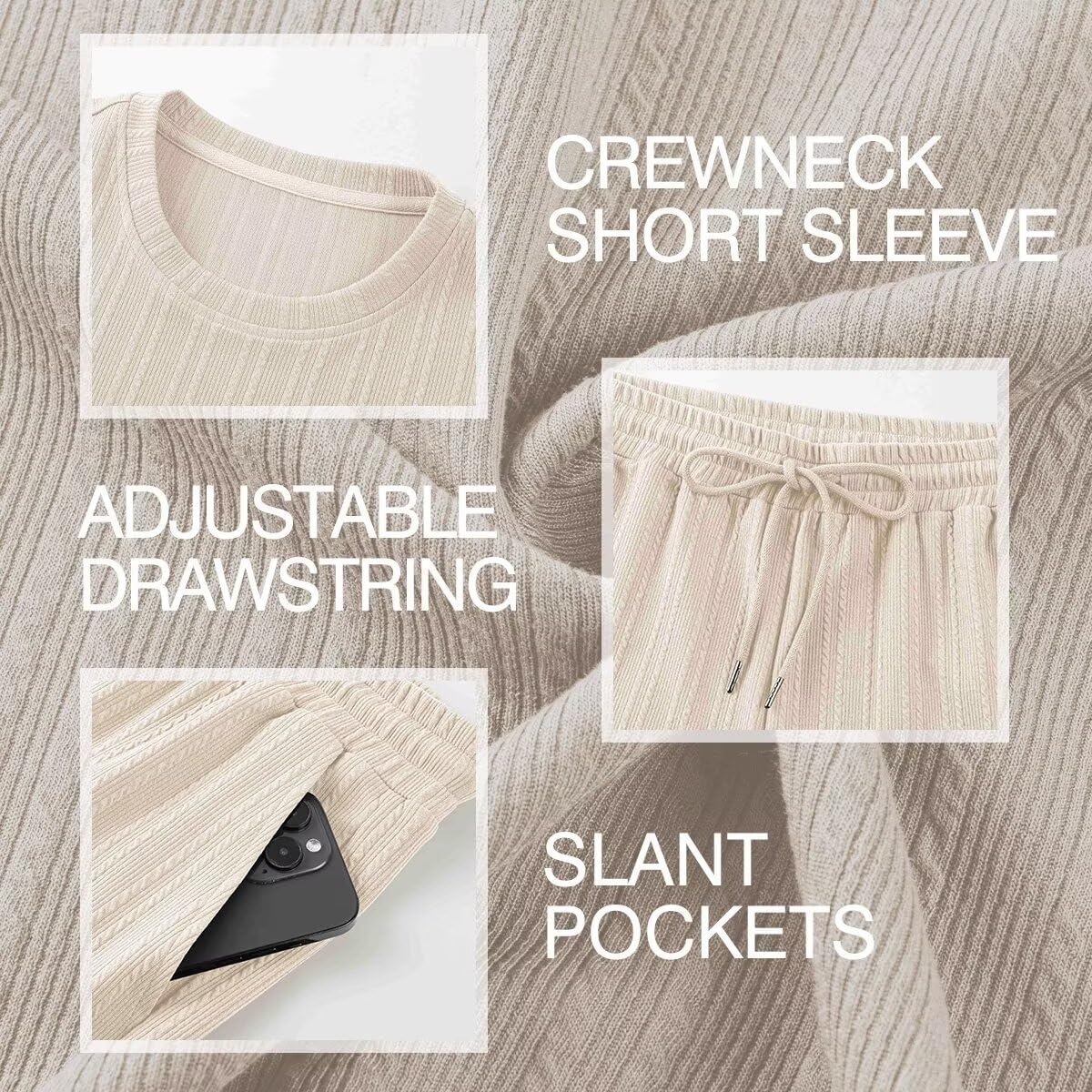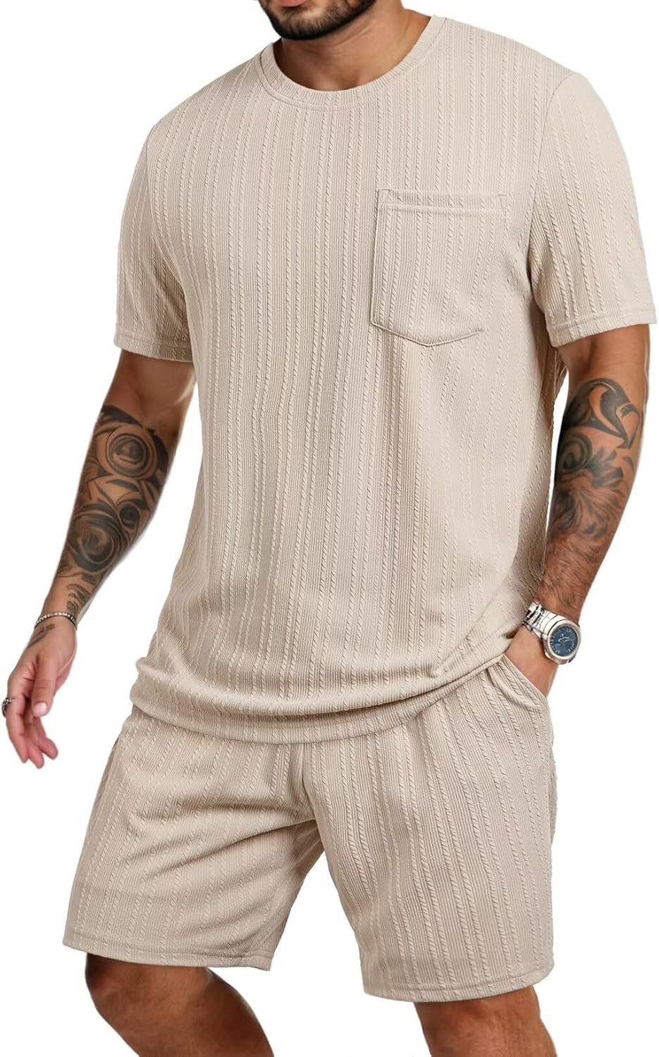 Mens Track Suits 2 Piece Set Casual Crewneck Texture T Shirt and Shorts Set Sweatsuit Summer Outfits with Pockets