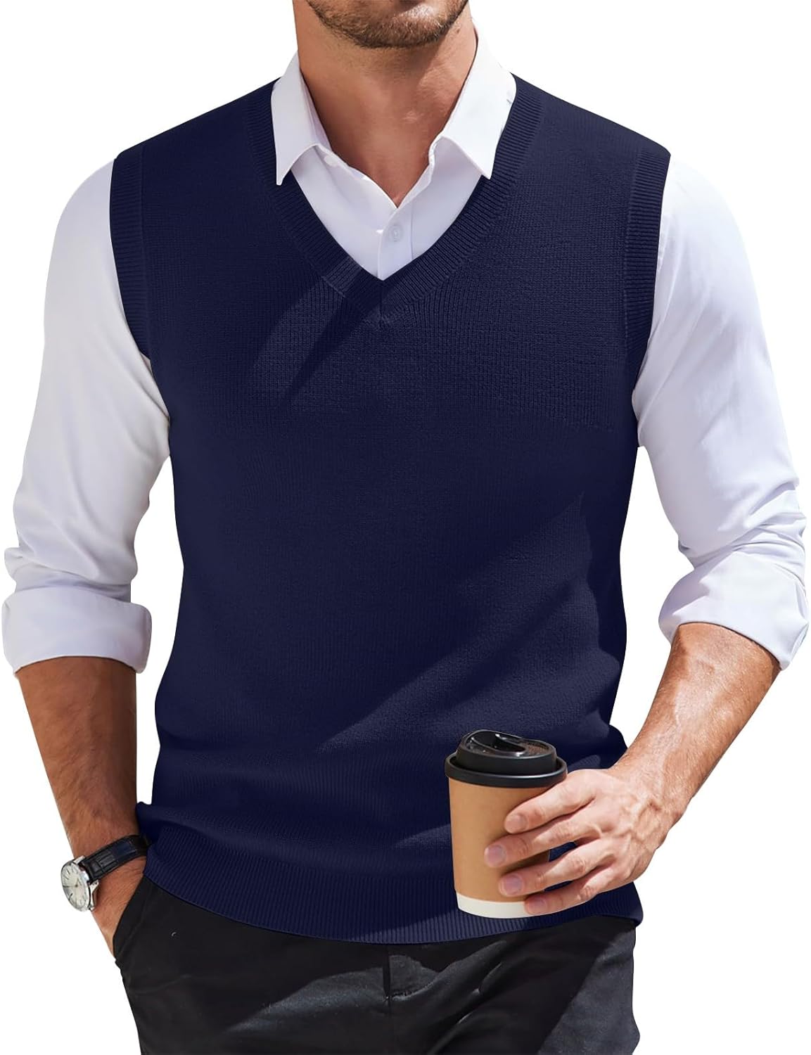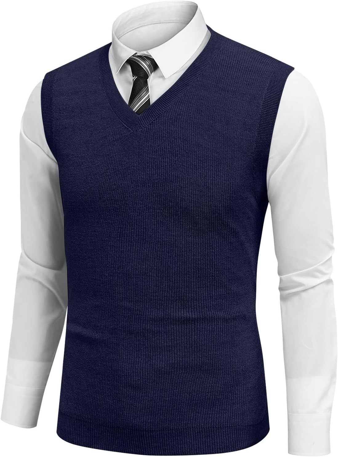 Mens Sweater Vest V neck Slim Fit Sleeveless Pullover Sweater