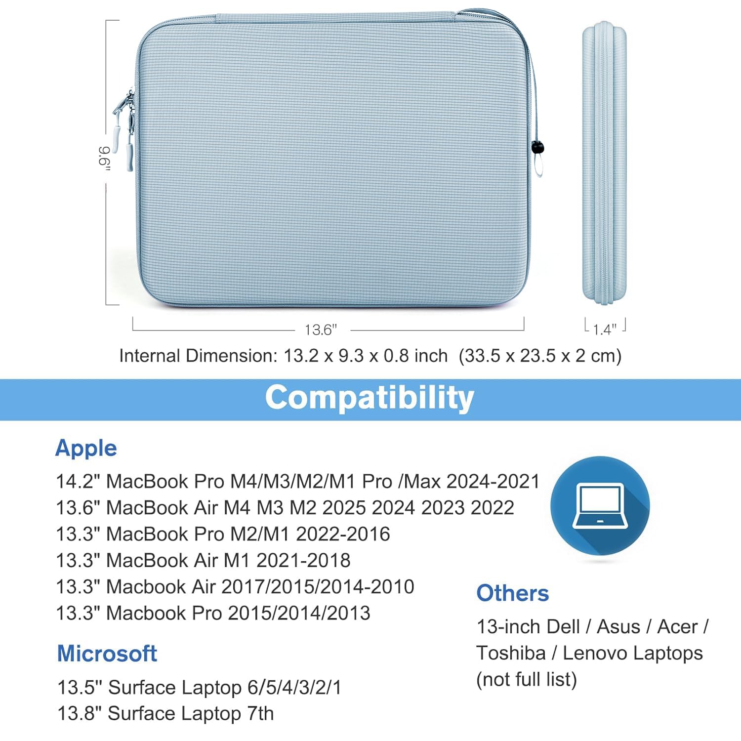 MOCA EVA 13-inch Laptop Sleeve Case for 13.3” – 14 inch MacBook Pro/Air M1 M2, Surface Laptop 3/2, Dell Inspiron 13/XPS 13 (Light Blue, 13.3-14 inch)
