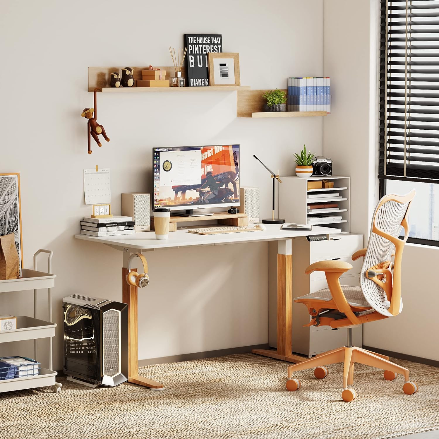 Monomi Electric Standing Desk, 55 x 28 inches Height Adjustable, Ergonomic Home Office Sit Stand Up Desk with Memory Preset Controller (White Top/Wood Grain Frame)