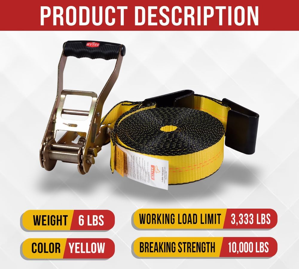 ✔ WORKING LOAD LIMIT: This heavy duty tie down strap has a Working Load Limit of 3,333 lbs. with a break strength capacity of 10,000 lbs