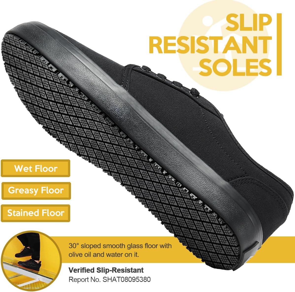 Non Slip Work Shoes for Men & Women Food Service, Unisex Black Casual Stain & Oil Slip Resistant Restaurant Server Sneakers, Comfortable Water Resistant Culinary Chef Kitchen Cook Shoes