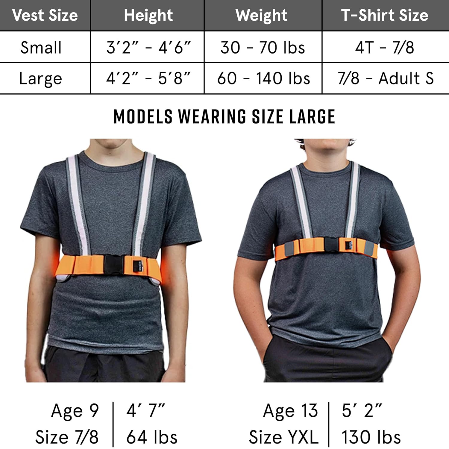 noxgear TracerJr – Child Illuminated and Reflective Safety Vest – Durable, Weatherproof and Highly Adjustable – Rechargeable, 12 Hour Battery Life for Biking, Playing or Any Outdoor Adventure (Large)