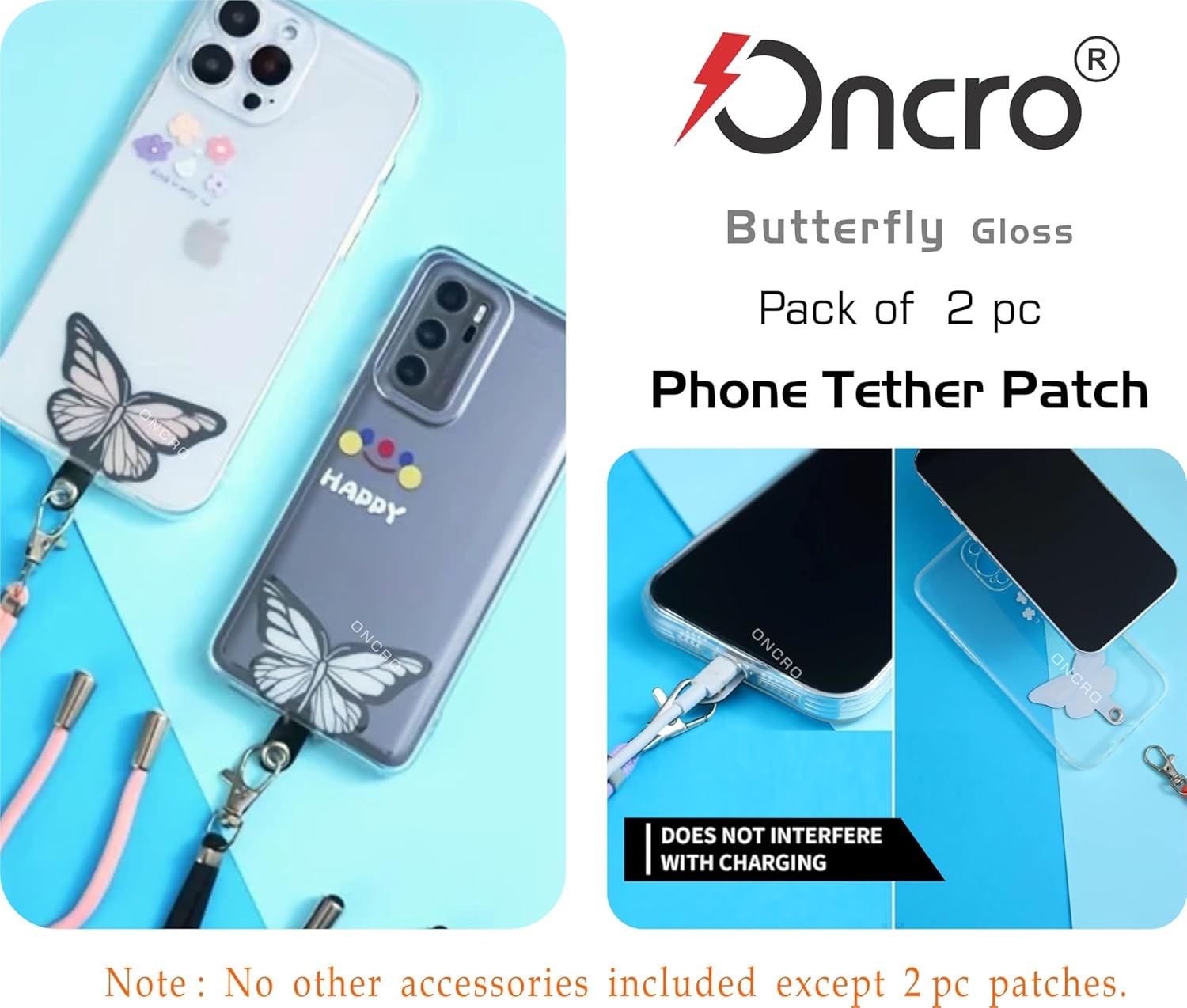 ONCRO® Transparent Butterfly Smiley Purple Phone Tether Tab pad Universal Lanyard Patch Without Adhesive Anti-Lost Hanging Metal Ring for Smartphone Mobile Wrist charm