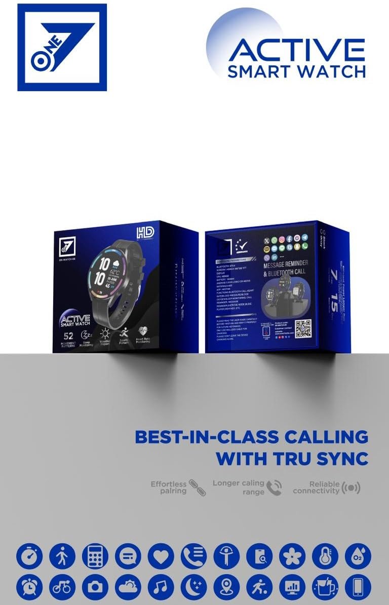 Stay connected and active with this Active Smart Watch featuring Bluetooth Calling and Tru Sync technology, designed to deliver seamless calling and smart notifications directly from your wrist. The HD touch display provides a clear and vibrant viewing experience, while multiple sports modes and fitness tracking features help you monitor daily activity, steps, calories, and distance. Built-in heart rate and sleep monitoring support better health awareness, making it an ideal companion for both workouts and everyday life. With its stylish design, comfortable fit, and long-lasting battery, this smartwatch is perfect for users looking for smart functionality, fitness tracking, and modern convenience in one device.
