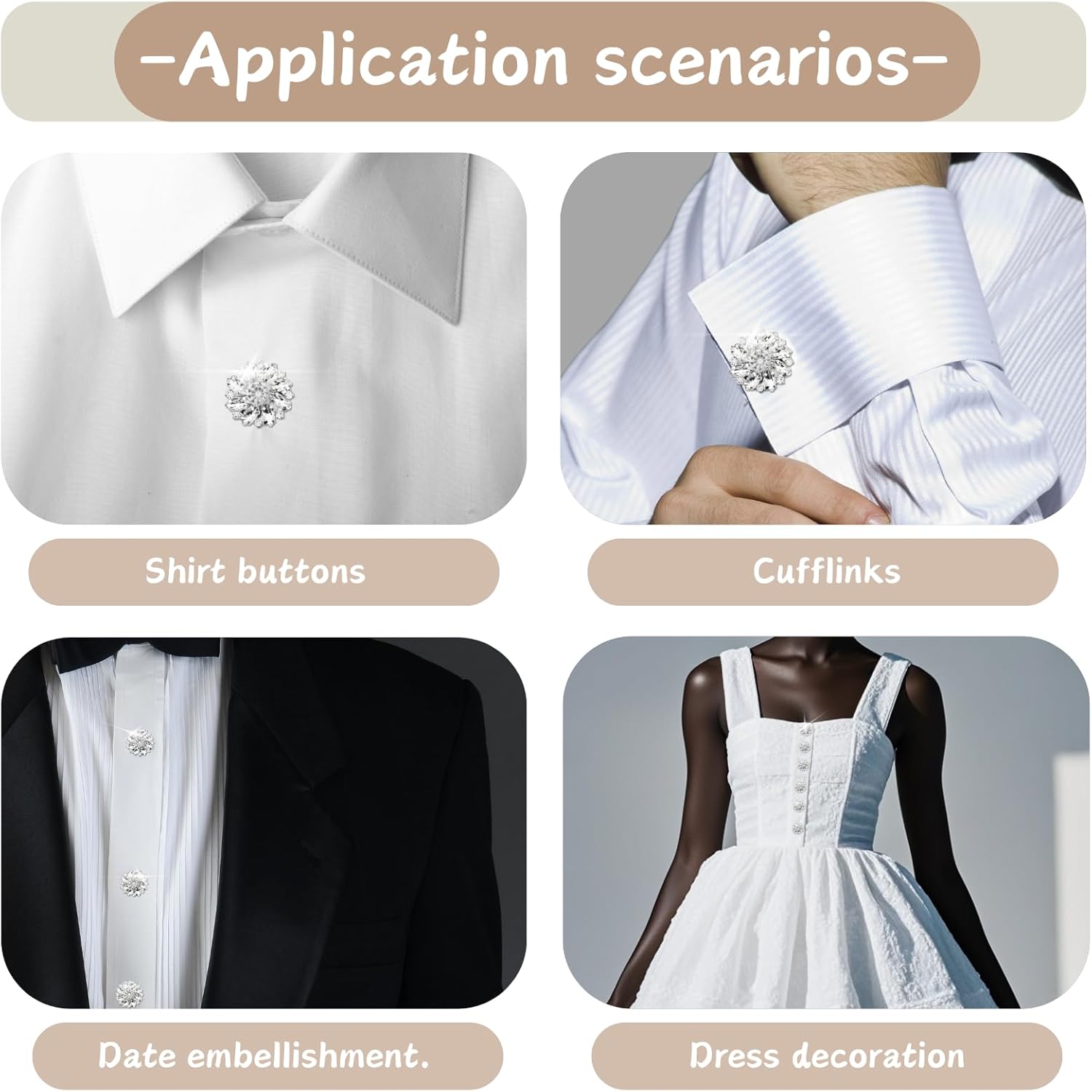 Wide Application: Our rhinestone buttons are sparkly and uniquely designed for use in dresses, coats, suits, hats, scarves, shawls, sweaters, shoes, belts, girl hairpins, bags or other items. It can also be used to decorate wedding napkin, rings, wedding dress, wedding bouquet