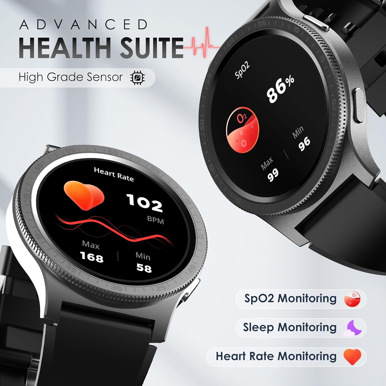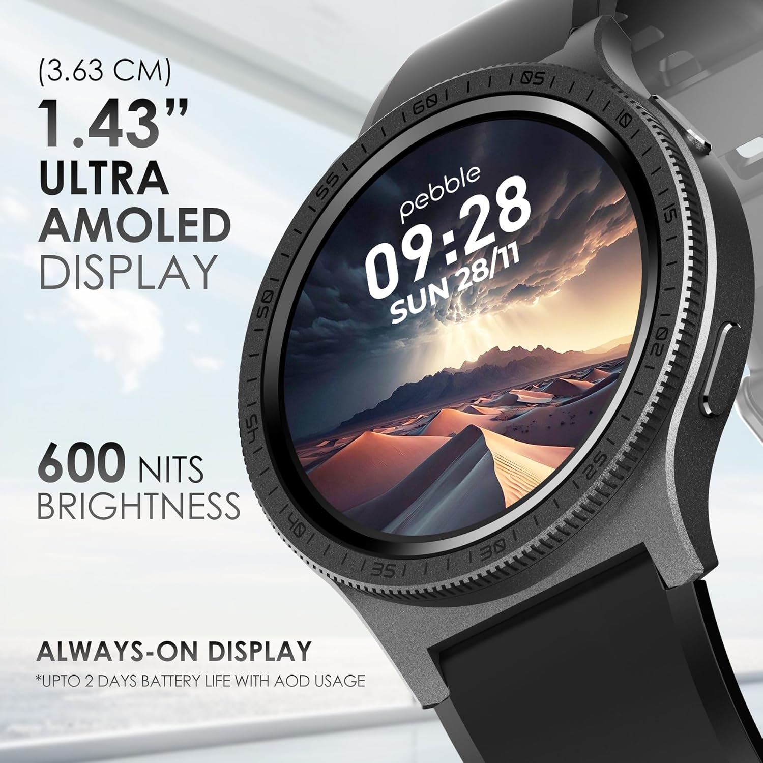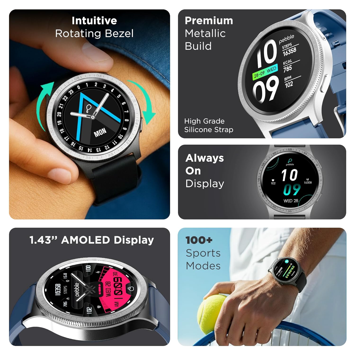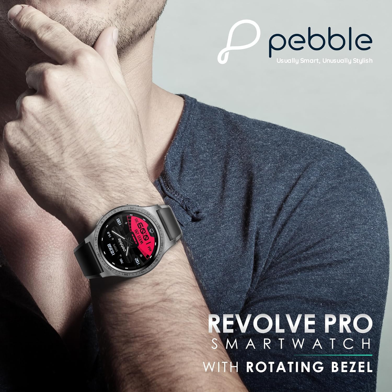 Rotating Bezel: Revolve Pro smart watch’s rotating bezel replaces the traditional rotating crown on a smartwatch, allowing users to seamlessly navigate menus, watchfaces and sports modes