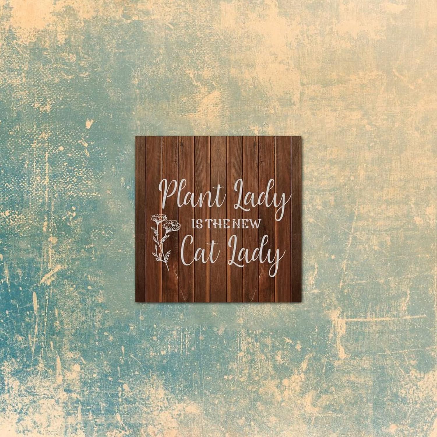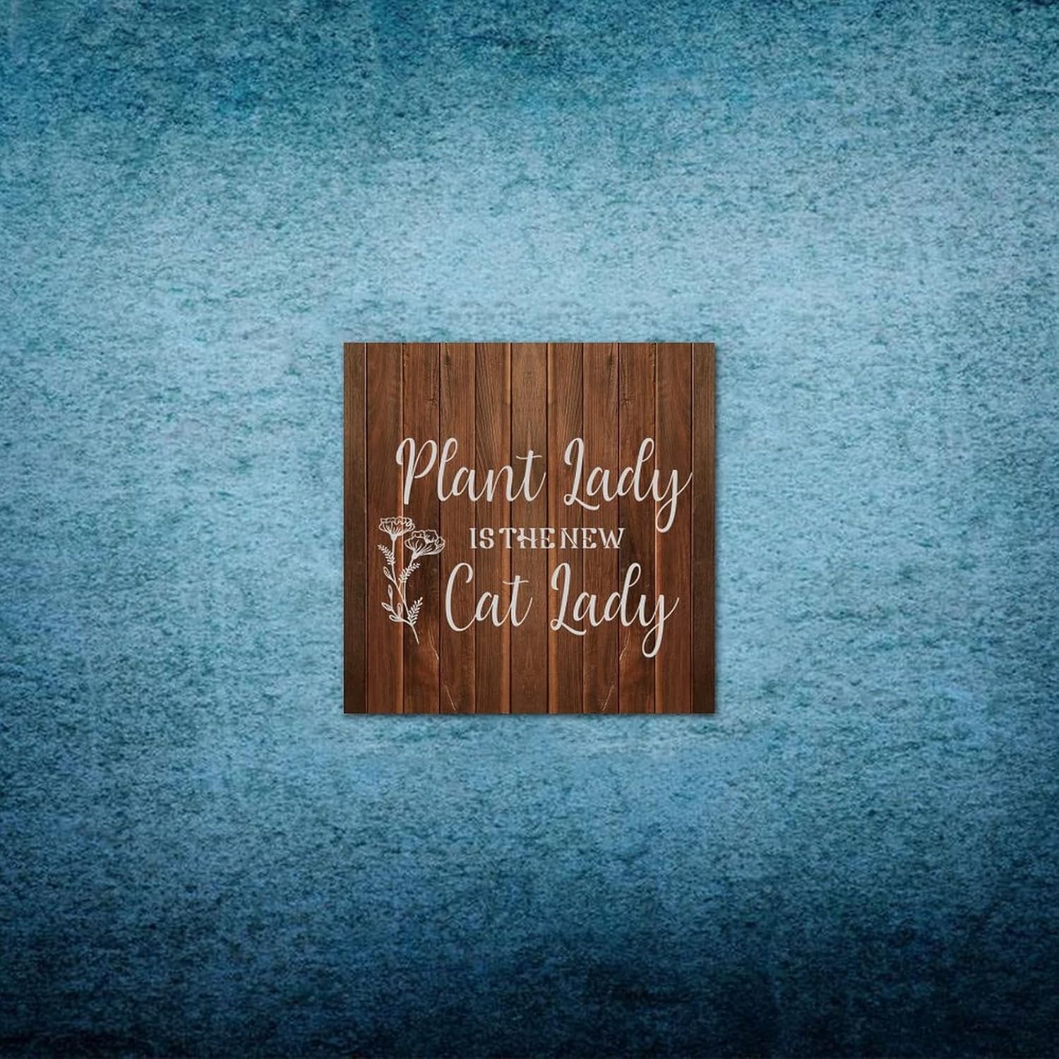 Plant Lady Is The New Cat Lady Wood Round Signs I Love You Wood Sign Custom Wood Plaques Near Me Carved Wooden Name Plates For Desk No Fading Fashion Horror For Mother’S Day 14*14 Inch