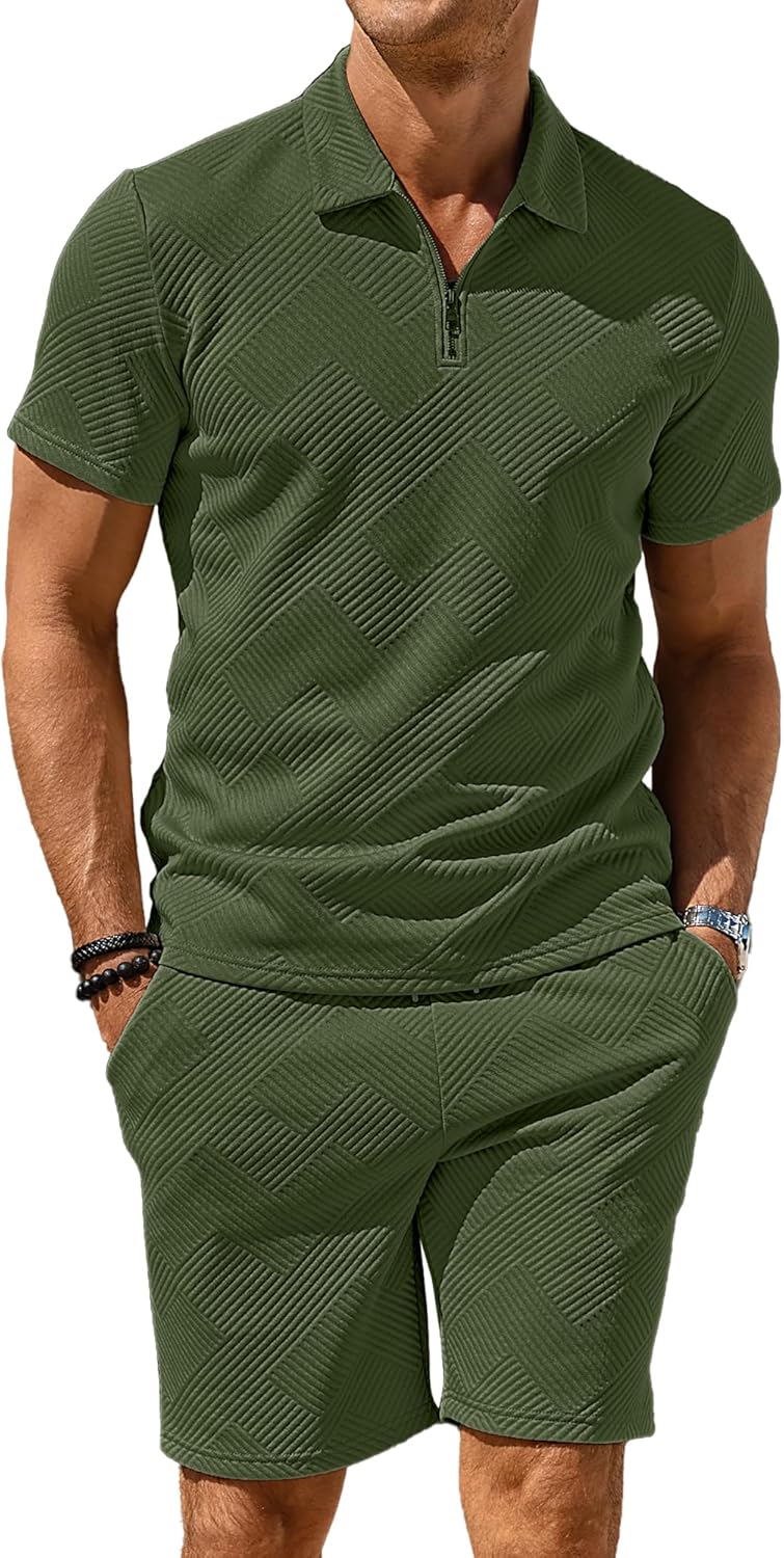 PLEPAN Mens Polo Shirt and Shorts Set Fashion Casual Track Suits 2 Piece Sets Short Sleeve Sweatsuit Outfits Golf Polo Shirts