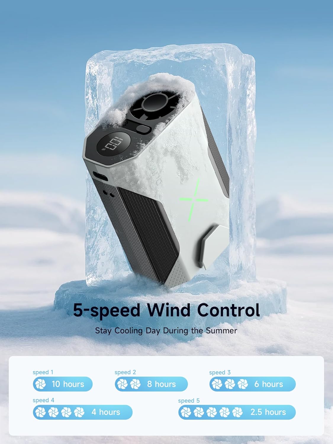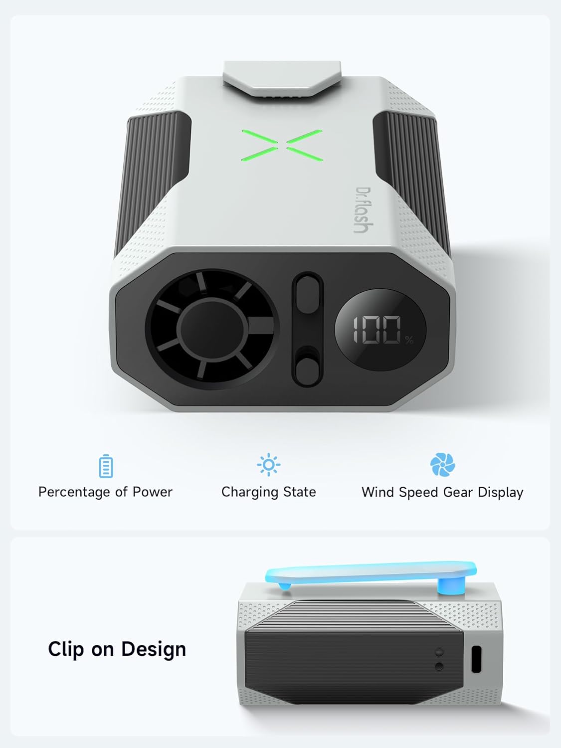 Large Capacity Battery & Long Working Time:Built-in 5000mAh rechargeable battery, which can be run continuously for up to 10 hours at low speed according to the air speed, and takes 2-3 hours to to fully charge. Our portable waist clip fan can be used when it’s during charging