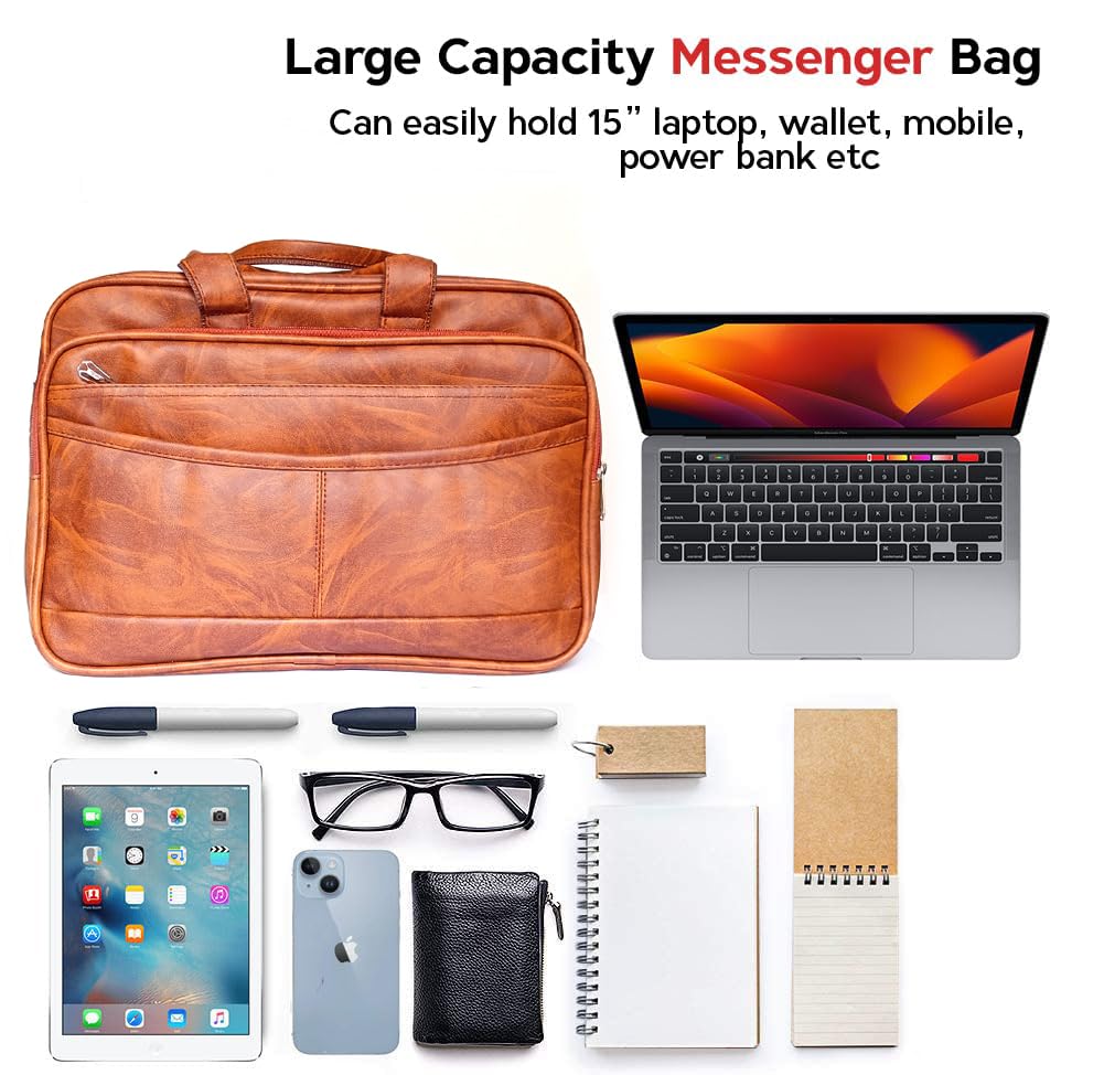 Lightweight yet durable Stylcozy Richard series unisex Laptop briefcase carries a laptop plus other everyday business essentials, equipment, accessories and more all in one place, efficiently organized and perfectly designed to look, executive. The laptop bag fits laptops up to up to 15.6 inches. It is provided with padded compartments to keep your laptop safe from external shocks. It is handcrafted from vegan leather and lined with polypropylene material. It comes with an adjustable padded shoulder strap and additional accessory zipper pockets. Hence, making it a perfect choice for gifting your loved ones. Stylcozy laptop bag is perfectly suitable for business travel, Casual hangouts as well as outdoor trips.