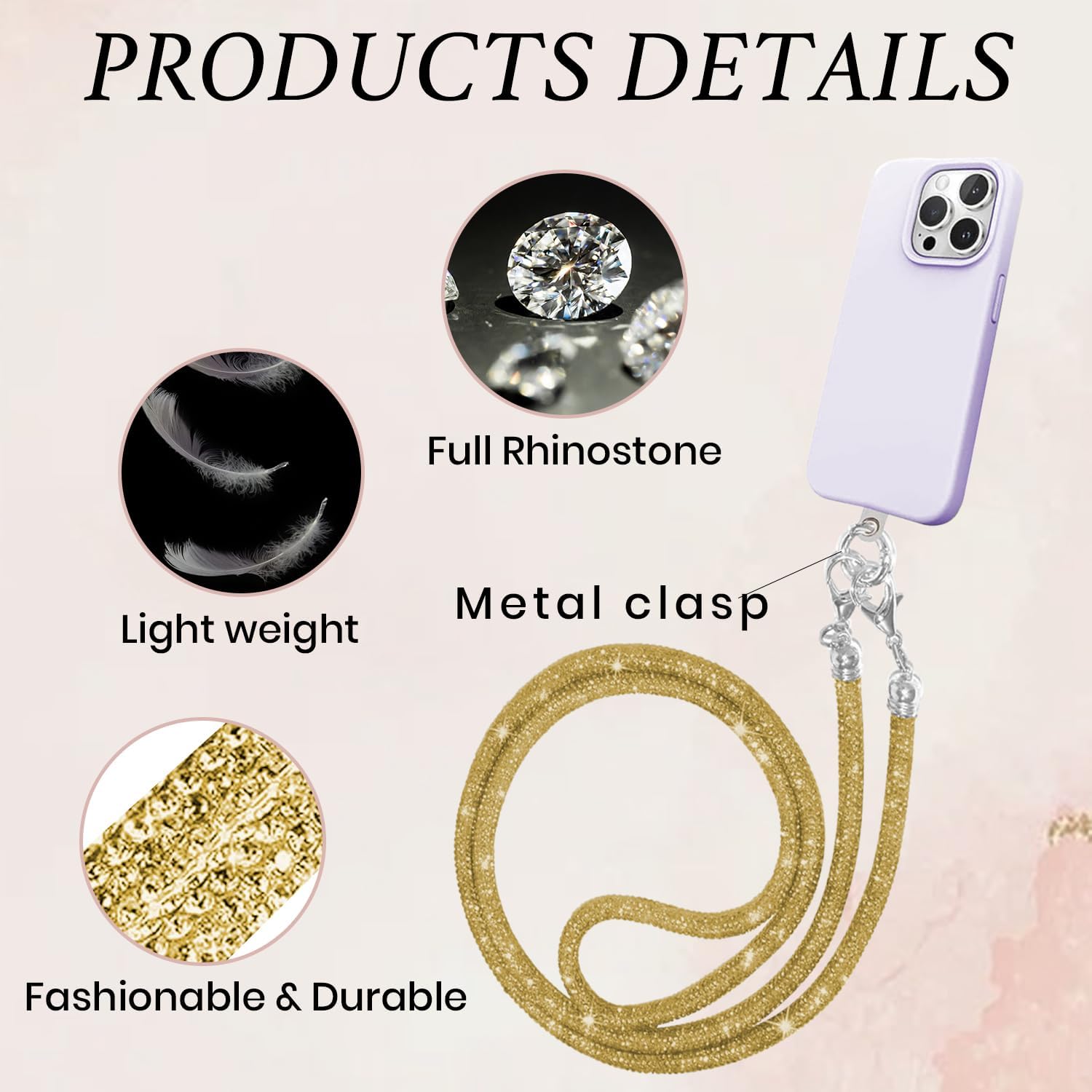 Elegant Diamond Finish: Features a luxurious diamond-cut chain design that adds a touch of glam to your smartphone look.