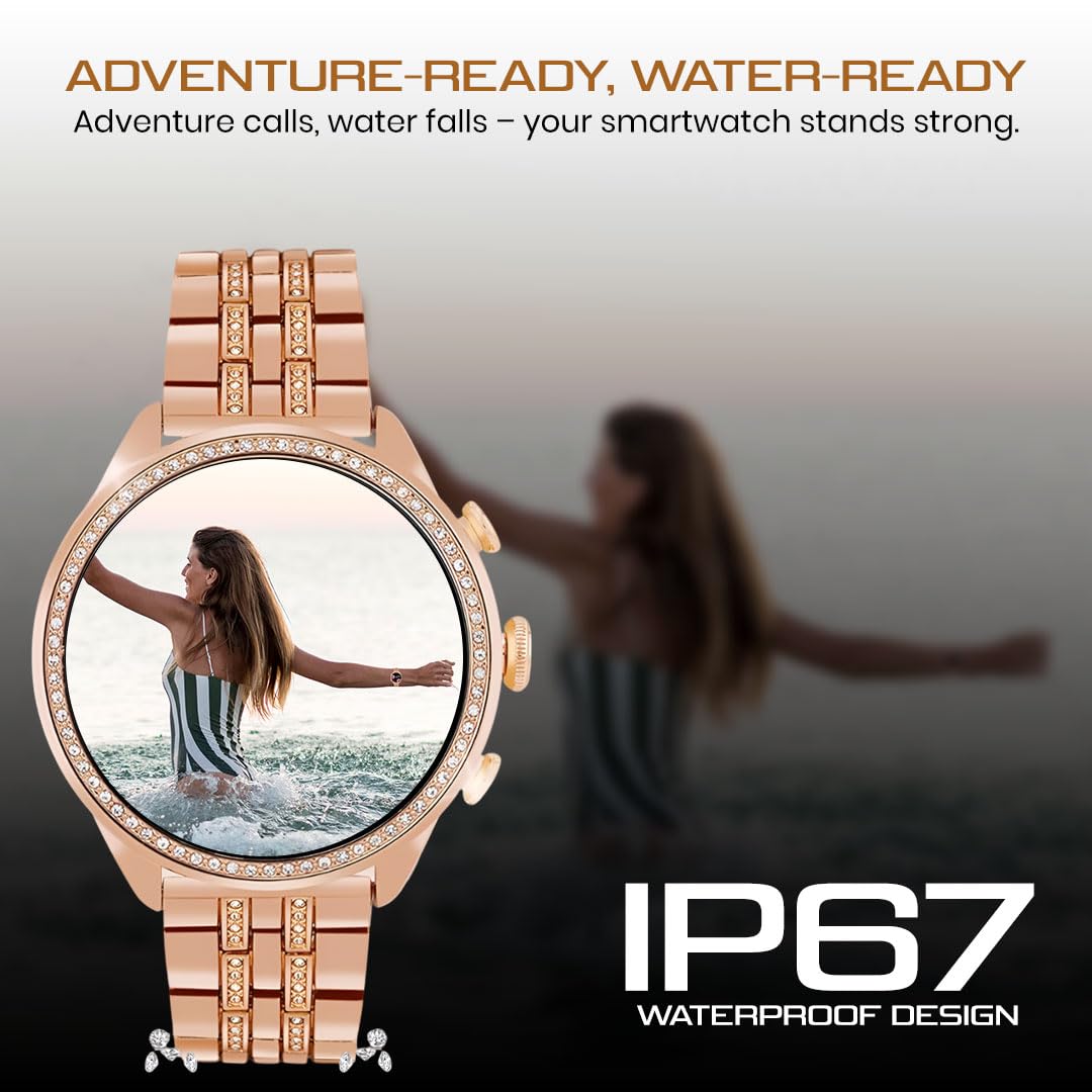 Customers find the smartwatch to be of good quality and appreciate its elegant design, with one customer highlighting its 100+ sports modes as fantastic features. Moreover, the watch functions well, with one customer noting it works even while swimming, and customers consider it the best option for its price point. However, the battery life receives mixed reviews, with several customers reporting slow charging and poor performance.