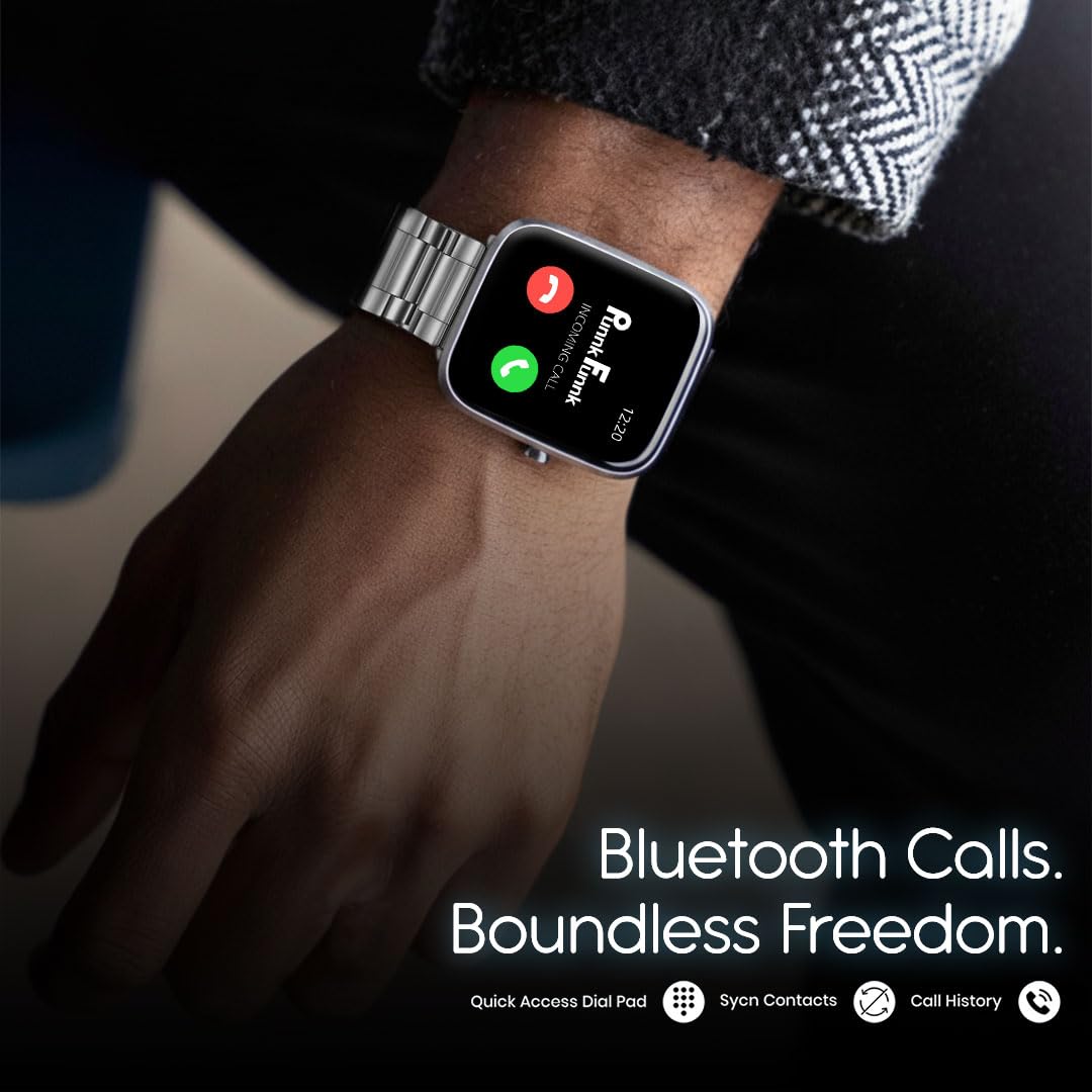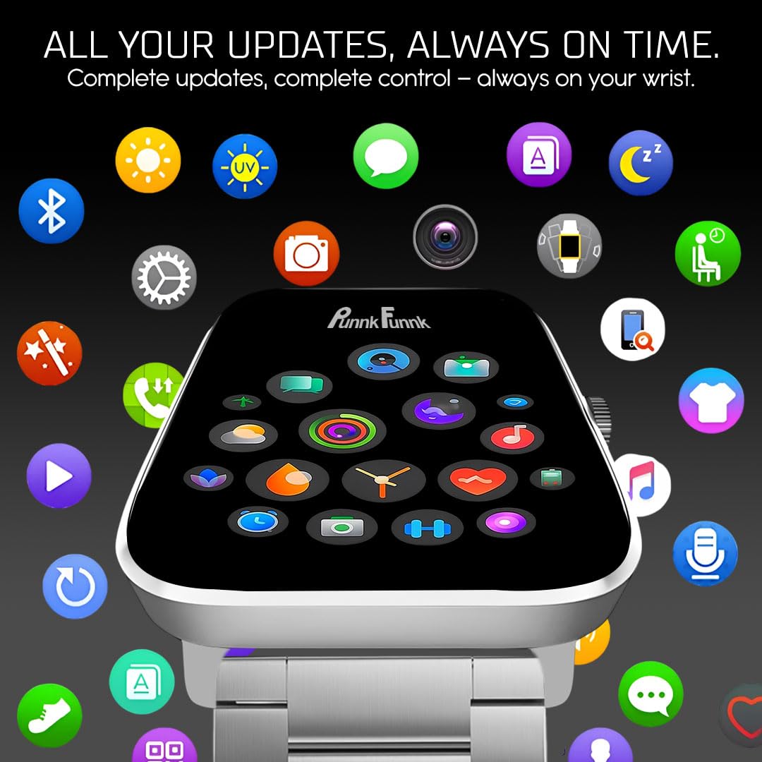 PunnkFunnk H18 Pro Smartwatch for Men & Women | 2.01″ HD TFT Display | Bluetooth Calling | Heart Rate & SpO2 Monitor | Long Battery Life | IP67 Fitness Watch with Multiple Sports Modes- (Metal Silver)