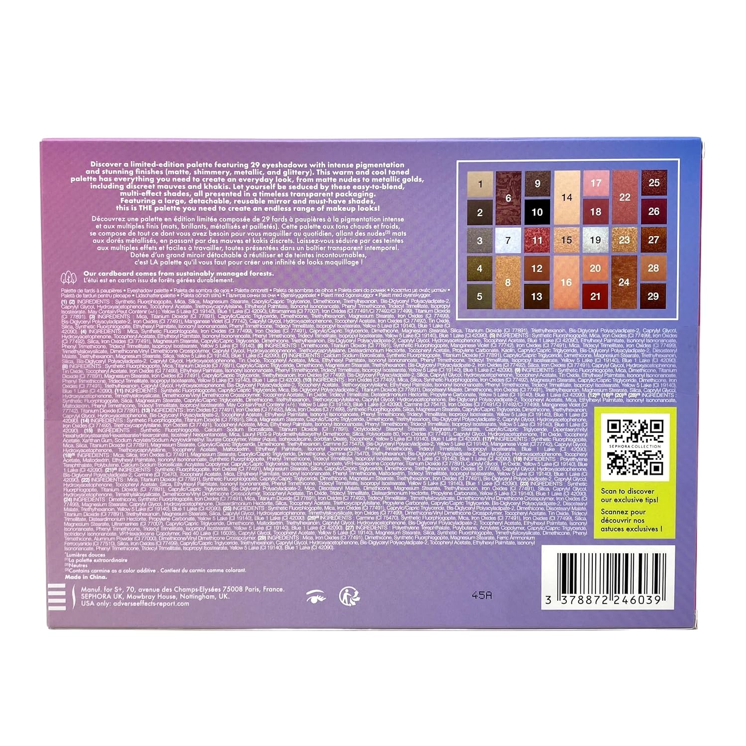 What it is: An essential palette of 29 intense, highly pigmented eyeshadows in matte, iridescent, metallic, and glitter finishes.