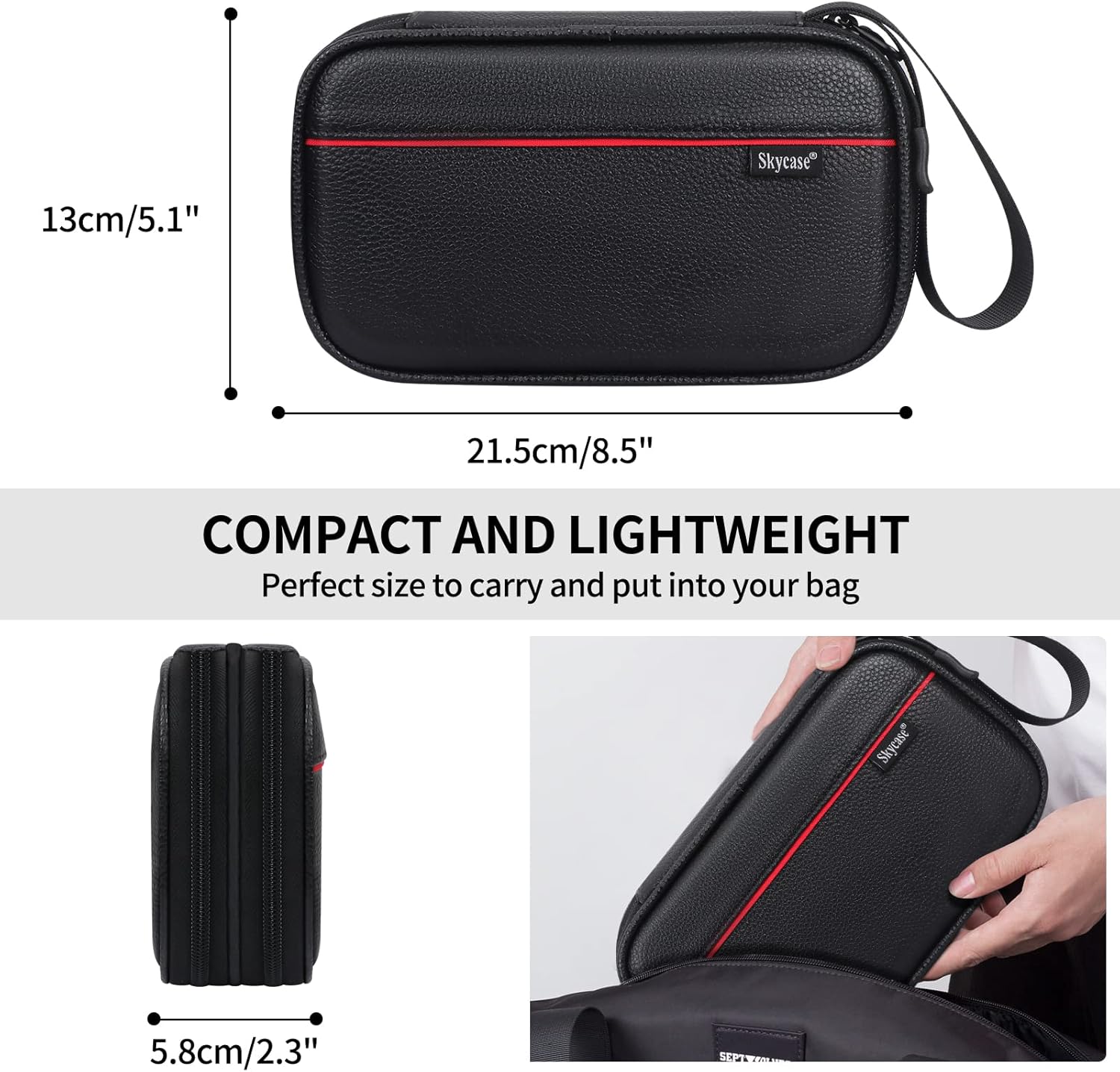 [Ideal Gift]Skycase accessories carry bag made of Luxury Genuine Leather,looks luxury and elegant,provide super impression and comfortable feels,Perfect for as a gift for your friend or elder. It is made for office workers, school students & travelers who need to store & organize their electronic accessories or school stationery supplies.