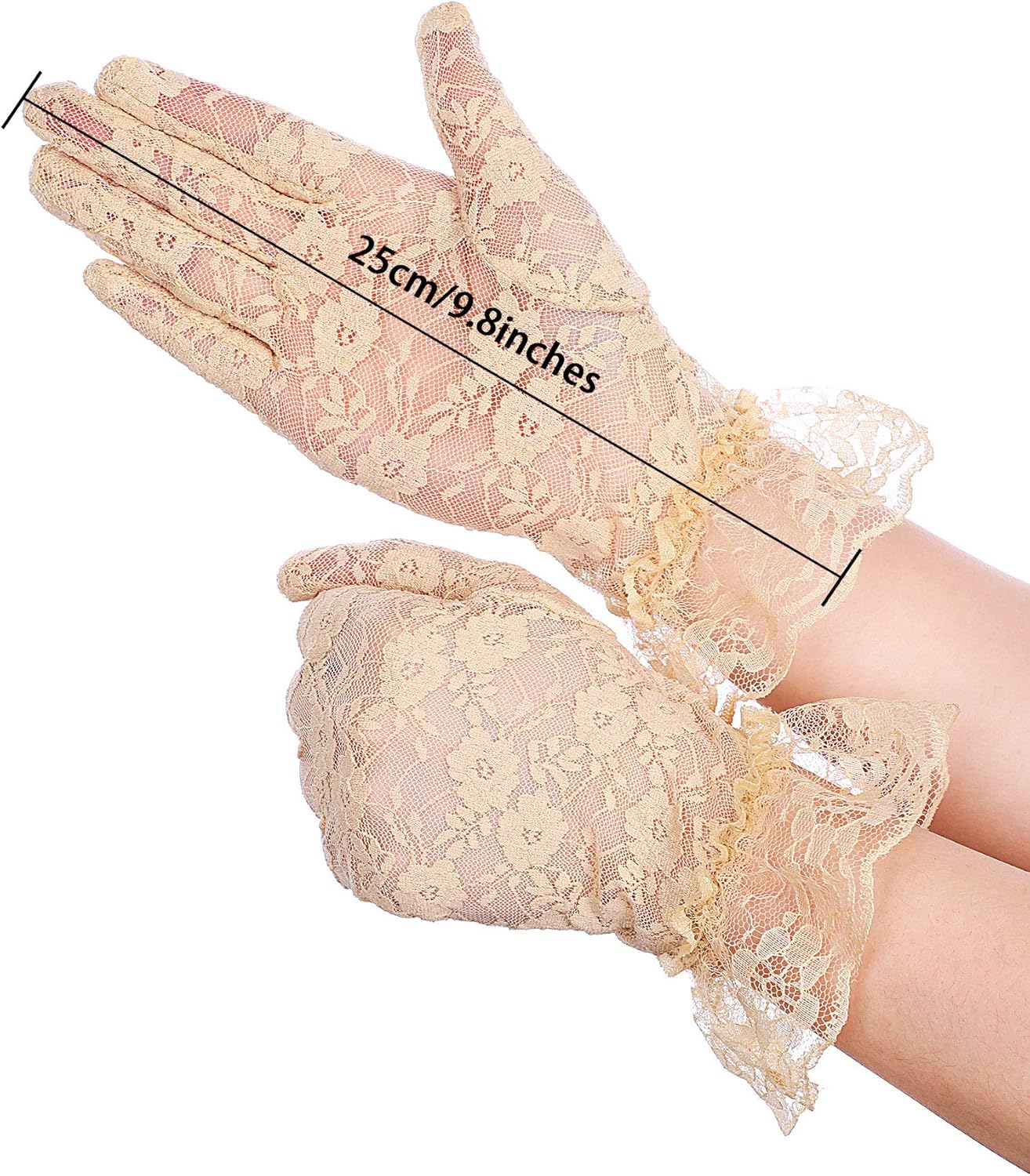 Made of lace and polyester in fine workmanship, quality and soft material, give you comfortable wearing experience, the gloves are elastic, you can stretch them to fit your hands, hand wash is recommended, no bleaching or ironing.