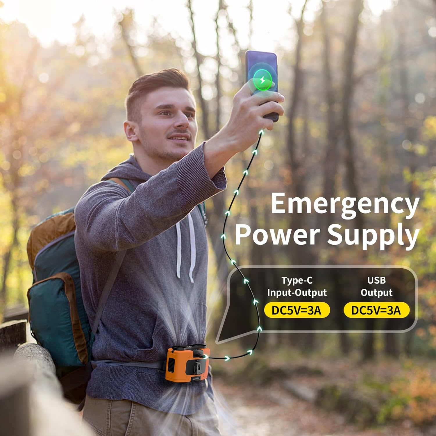 【Emergency Power Supply with LED Display】This waist rechargeable fan features a 5V-3A Type-C input for fast charging from USB chargers, laptops, and car chargers and a 5V-3A USB output to charge your phone during power outages or extreme weather. With an LED display design, clearly shows wind speed and battery life, allowing for quick adjustments and timely charging