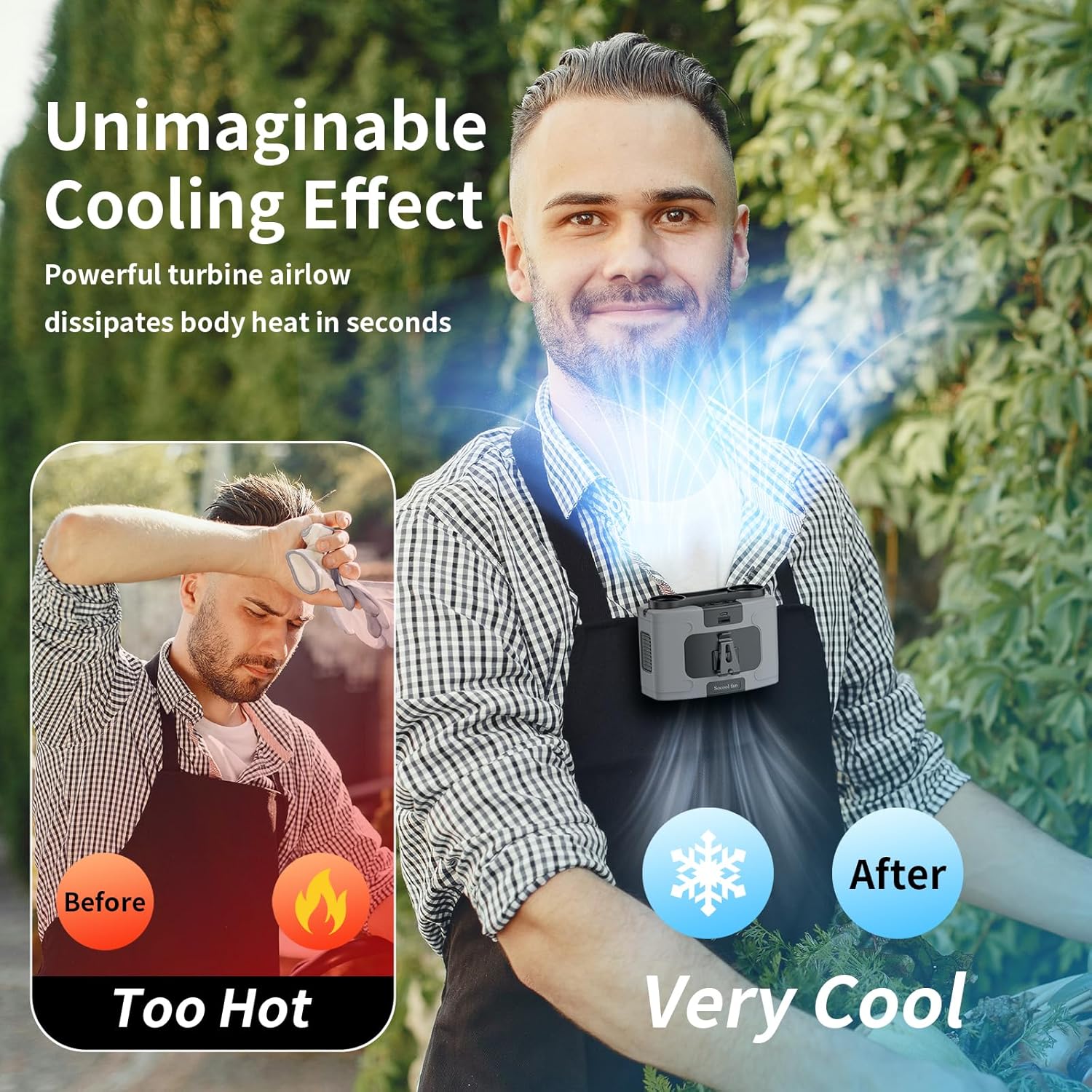 【Flexible Charging and with Colorful Screen】This undershirt fan has fast charging support via USB chargers, laptops, computers, car chargers, and other USB-enabled devices. Not only can it be used in an indoor home office, but it can also bring a cool feeling to your outdoor activities, like courtyard working, fishing, hiking, camping, and traveling. With a colorful screen design, wind speed, and the remaining battery can be seen at a glance, more convenient for you to adjust the wind speed and charge in time