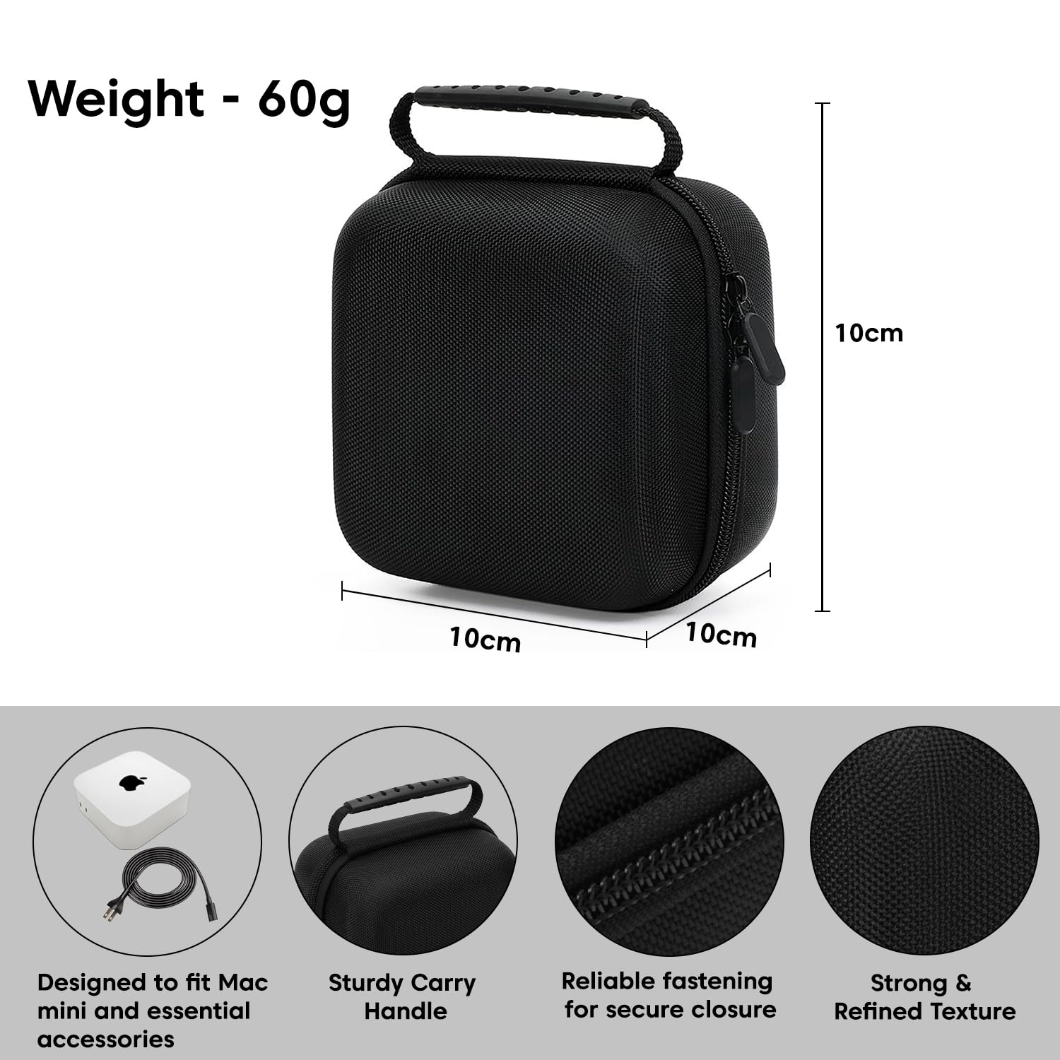 The Sounce Carrying Case for Mac Mini M4 is a thoughtfully designed premium travel and storage solution that combines durability, functionality, and convenience to ensure the ultimate protection for your Apple Mac Mini M4 desktop computer and its essential accessories. Built with a rugged and long-lasting EVA hard shell exterior, this case provides superior shockproof protection against accidental drops, bumps, and scratches, keeping your valuable device safe in a variety of situations. Its waterproof and weather-resistant design adds an extra layer of defense, shielding your Mac Mini M4 from unexpected spills, moisture, and light rain, making it reliable for both indoor and outdoor use. The carefully engineered interior features a custom-fit compartment to hold the Mac Mini M4 securely in place, while additional dedicated spaces are provided for storing accessories such as power adapters, cables, and small peripherals, helping you stay organized and reducing clutter during travel. Measuring a compact yet spacious 16x16x9.5 cm, this lightweight protective case is enhanced with a strong, comfortable handle that ensures easy portability, making it perfect for office commutes, professional business trips, or safely moving your device between rooms at home. Combining style, protection, and practicality into one streamlined solution, the Sounce Carrying Case is the ideal companion for creators, professionals, and everyday users who want dependable, on-the-go protection for their Mac Mini M4 without compromising on convenience or mobility.