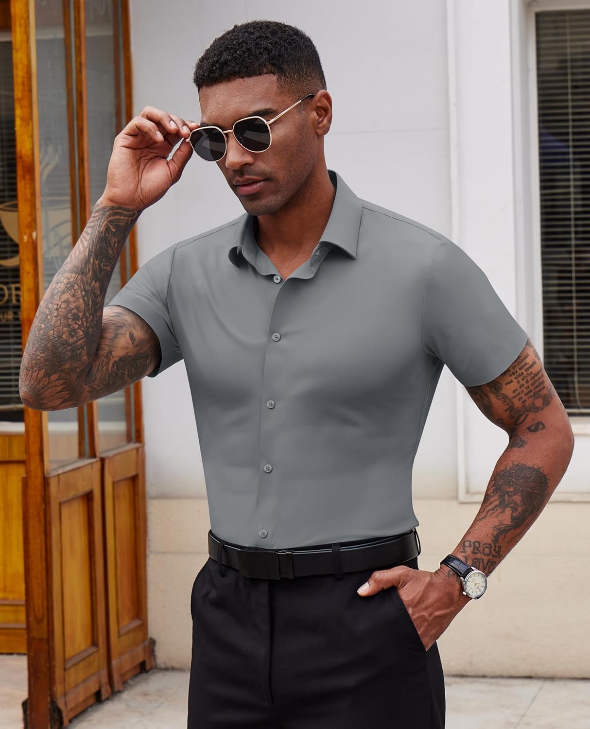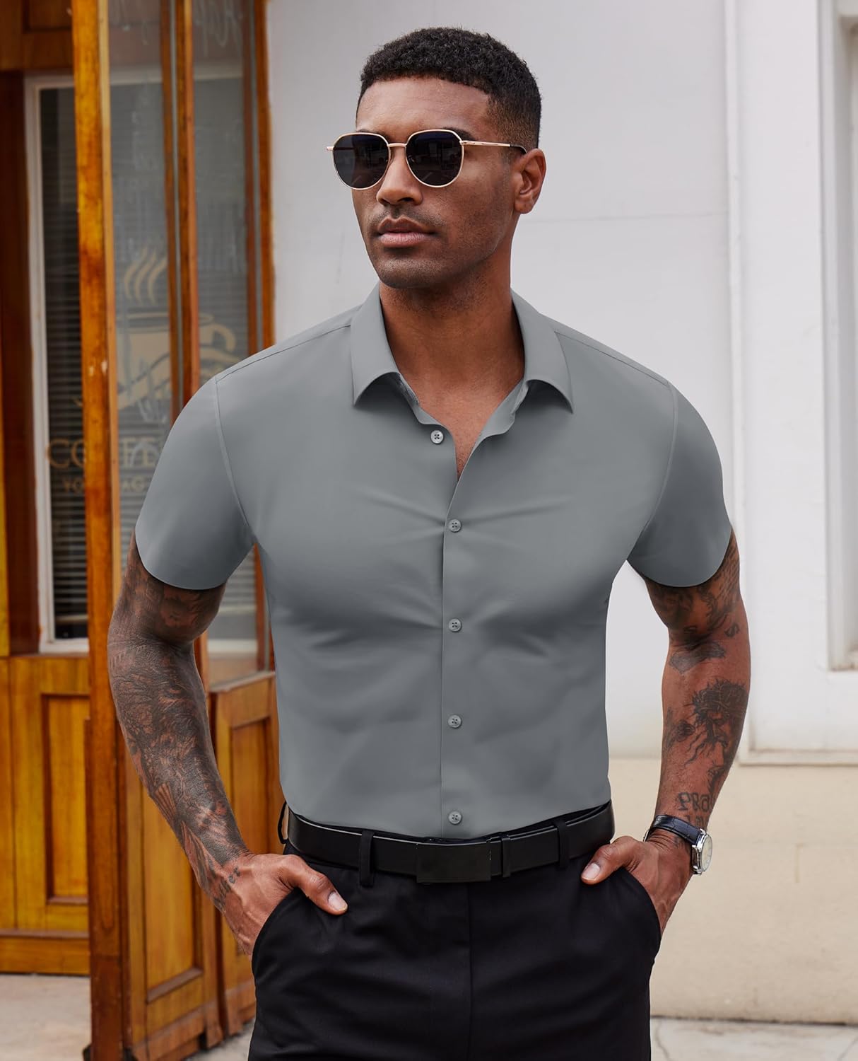 Customers find the dress shirt fits well, with one mentioning it’s great for bigger guys, and appreciate its good quality material and rich color. The shirt receives positive feedback for its comfort, stretchy material, and value for money. They like its style, with one customer noting it enhances their build, while another mentions there’s no bulging at the waist.