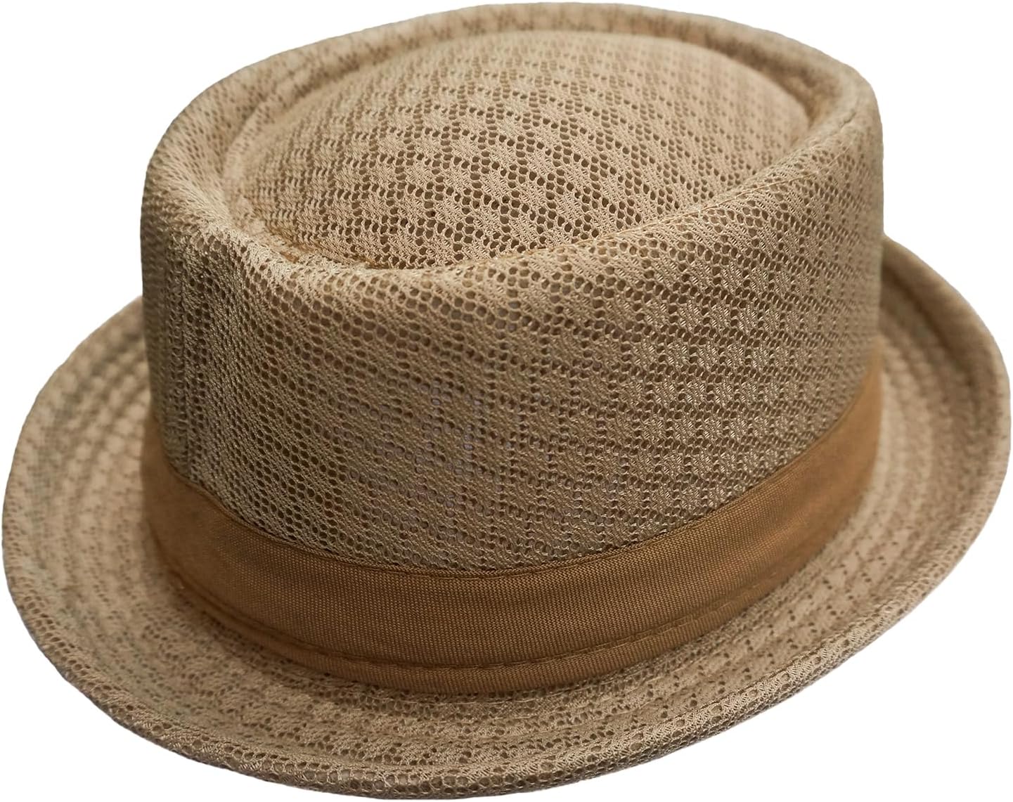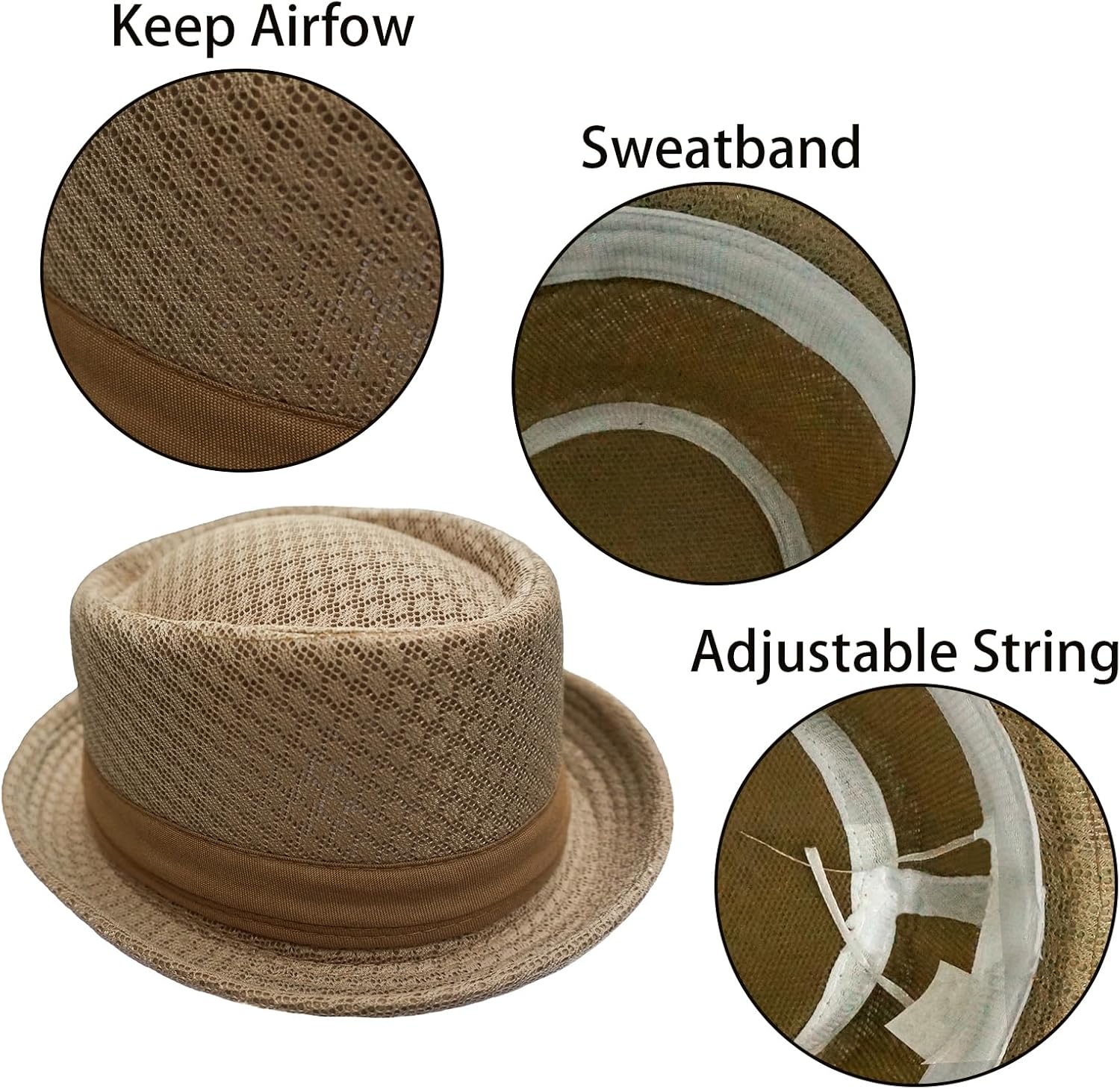 Summer Mesh Fedora Hat Beach Party Costume Boater Pork Pie Cap Classic Short Brim Straw Flat Sun Hats for Men Women