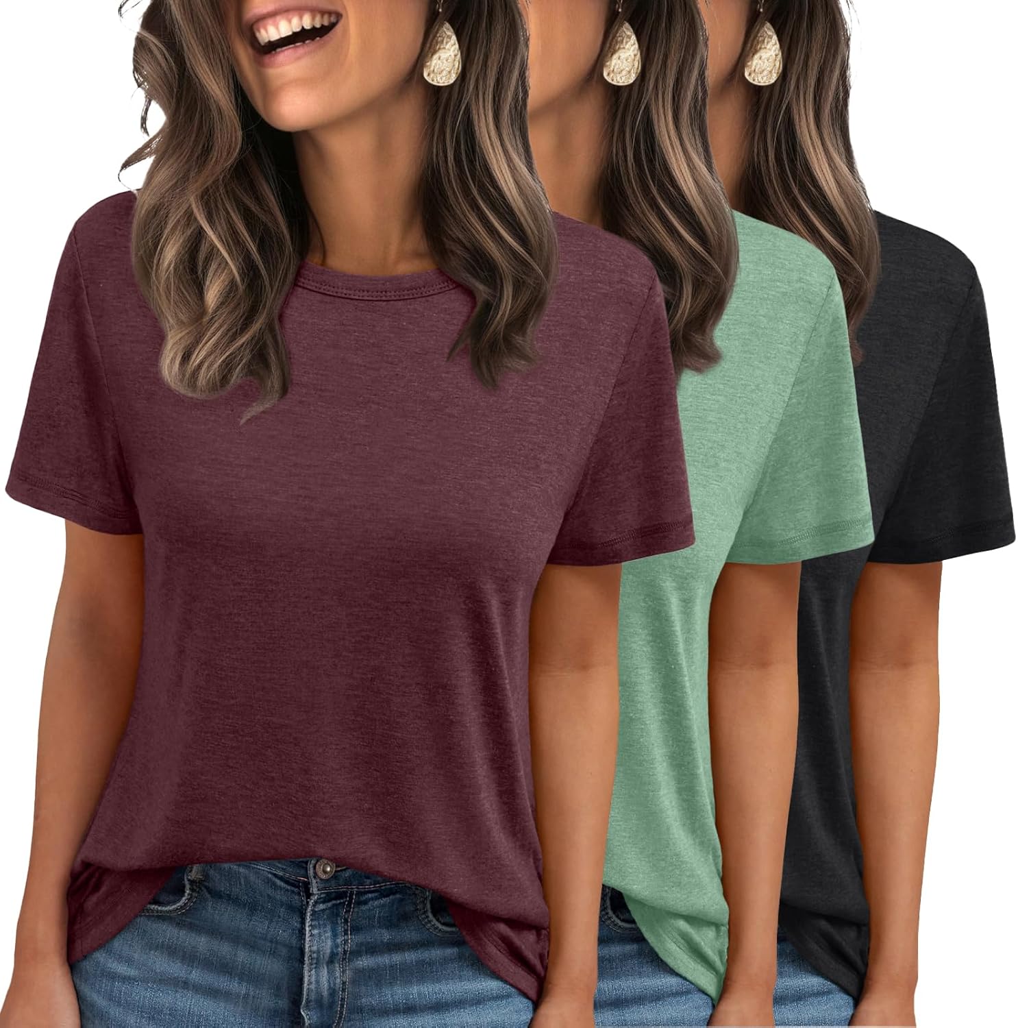 Womens 3 Pack Short Sleeve Tees