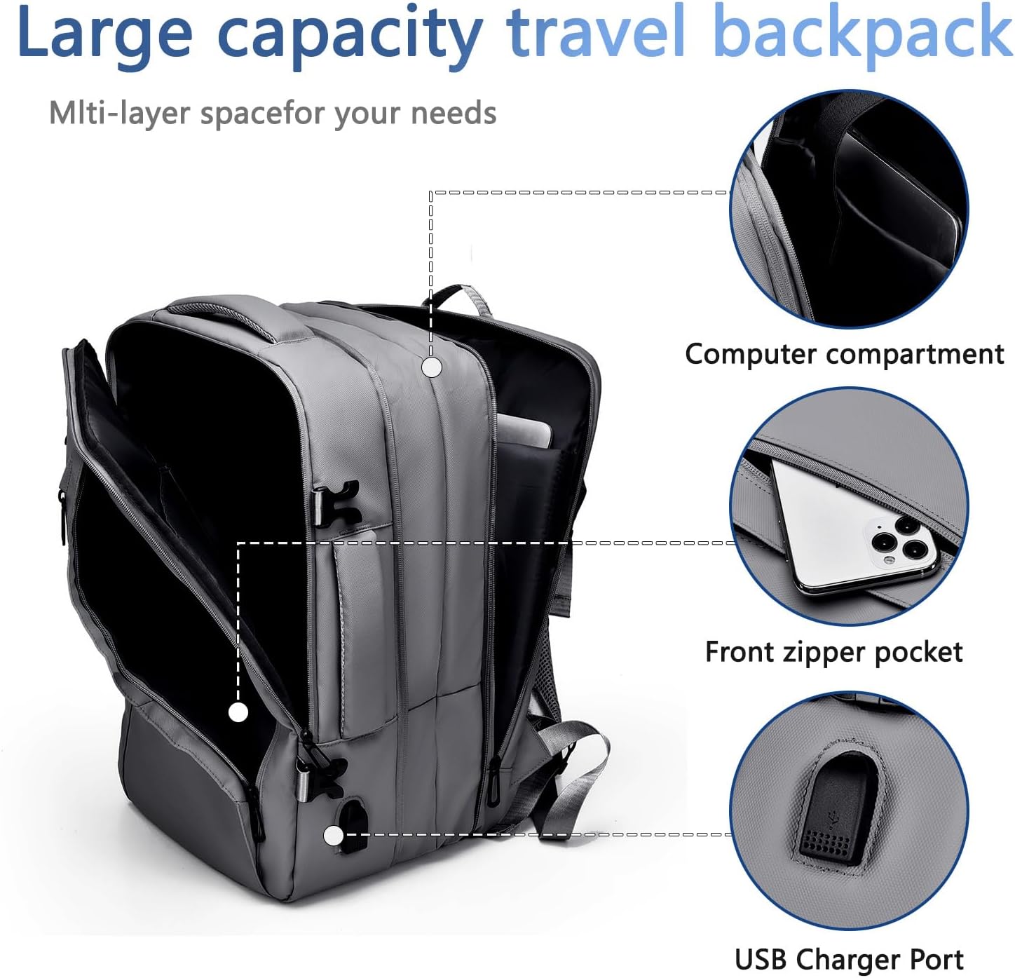 Travel laptop Backpack For Women Airline Approved, Carry On Backpack for 16 inch laptop with shoe compartment (grey)